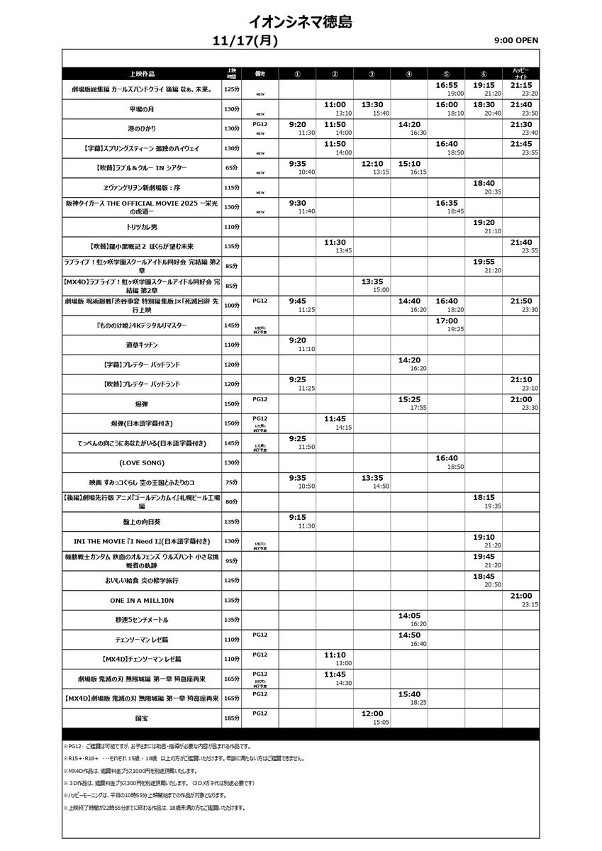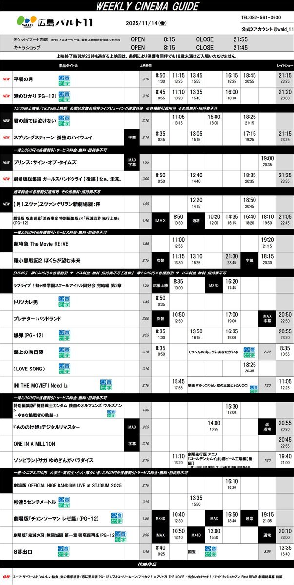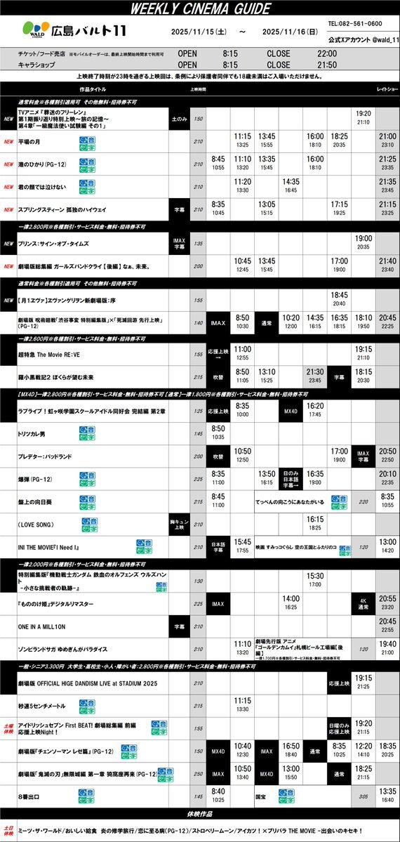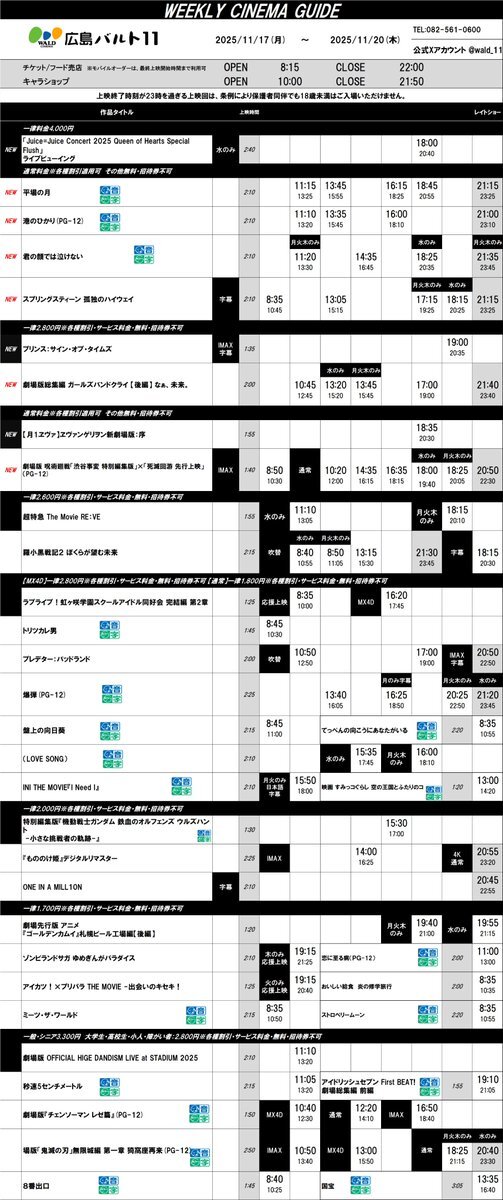 11/14(金)~11/20(木)上映スケジュール 🆕#君の顔では泣けない 🆕#劇場版総集編 ガールズバンドクライ 【後編】 なぁ、未来。 🆕#ラブル&クルー IN シアター 🆕#平場の月 🆕#港のひかり 🆕#スプリングスティーン 孤独のハイウェイ【字幕】 【OPEN時間】9:00~ pic.x.com/a6LnoTxaBJ