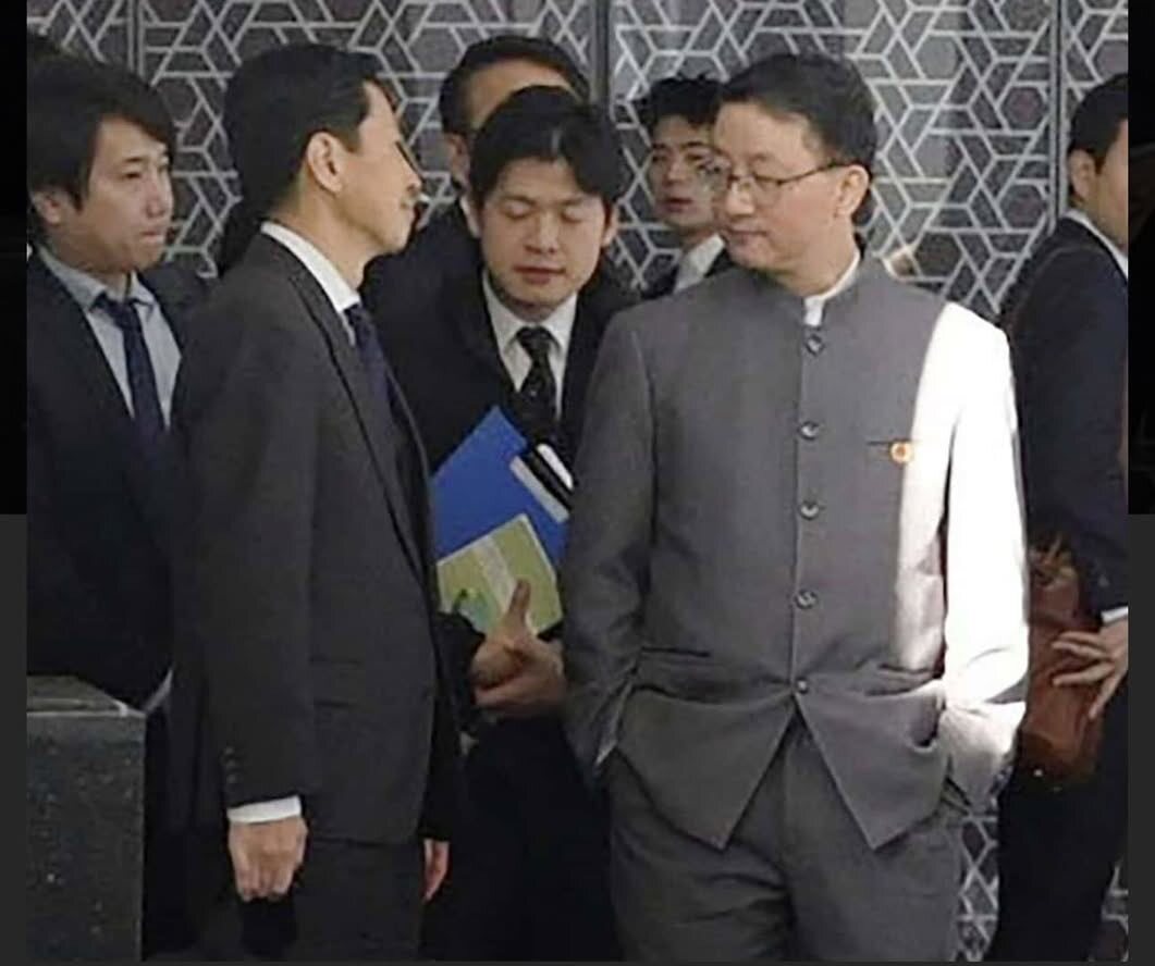 えーと。 中国外務省の劉勁松アジア局長の前と後を ご覧ください。 #劉勁松アジア局長 #怒られた後かな #ポケットに手を入れてて態度悪いねぇ pic.x.com/yxeDcmfkkd