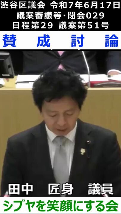 渋谷区議会 令和7年6月17日 038 日程第29 議案第51号 玉川上水旧水路緑道再整備工事(その4)請負契約 反対討論 田中正也 議員(日本共産党)#shorts youtube.com/shorts/ZtlC4cn… #渋谷区議会 #田中正也 #日本共産党 #日本共産党渋谷区議会議員団 #反対討論 #玉川上水旧水路緑道 #再整備 x.com/Shibuya_no_Sor…