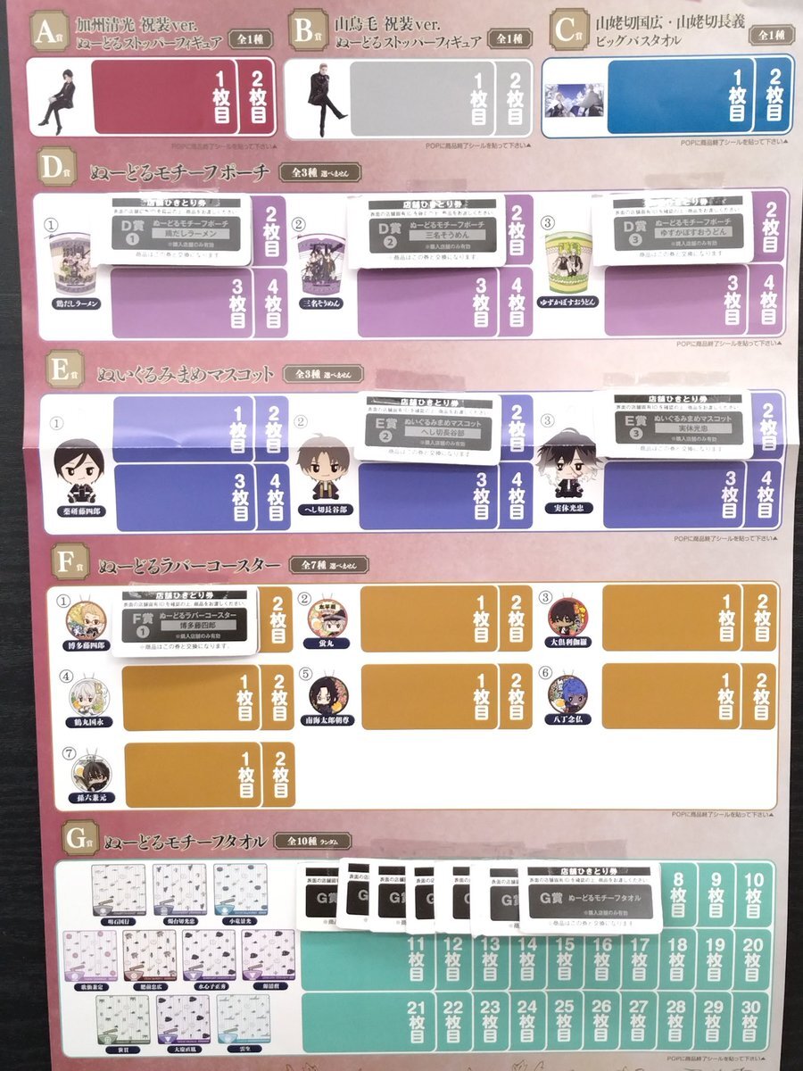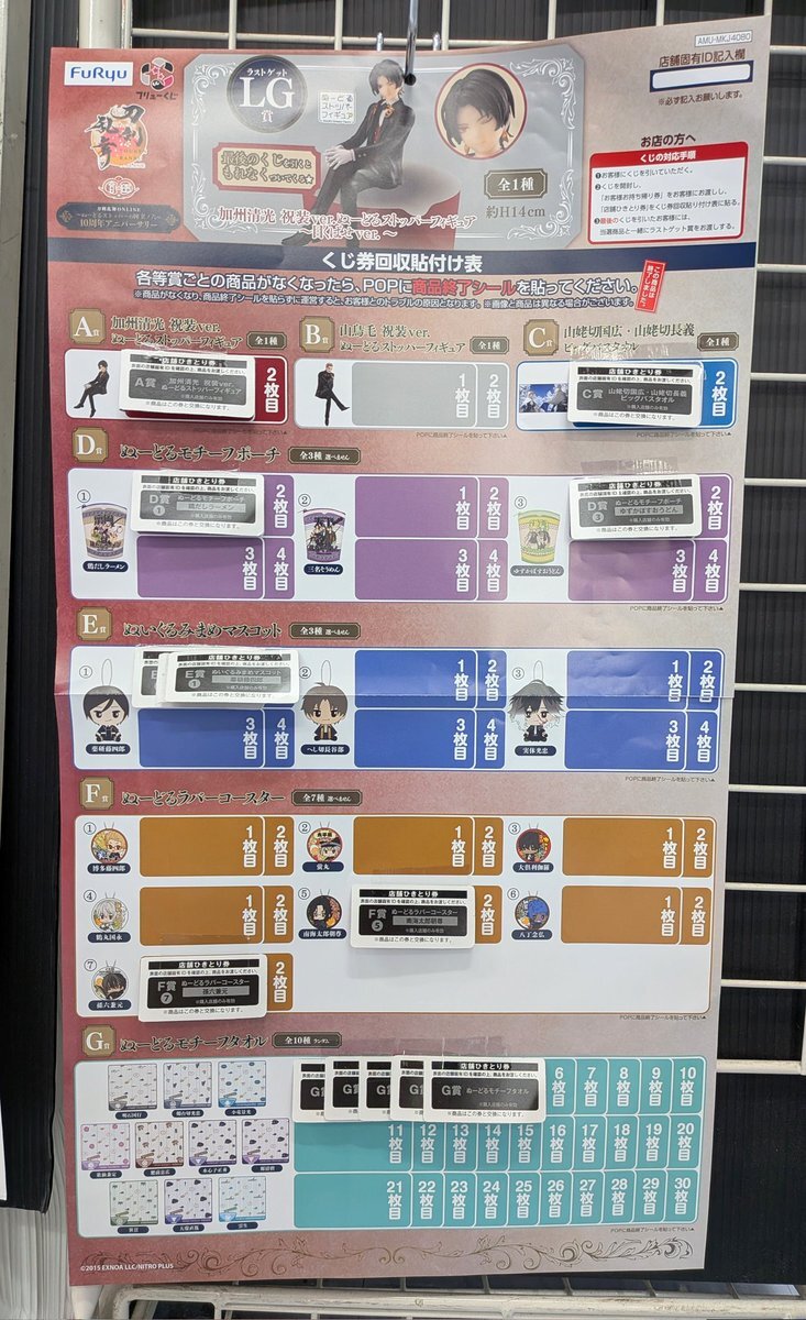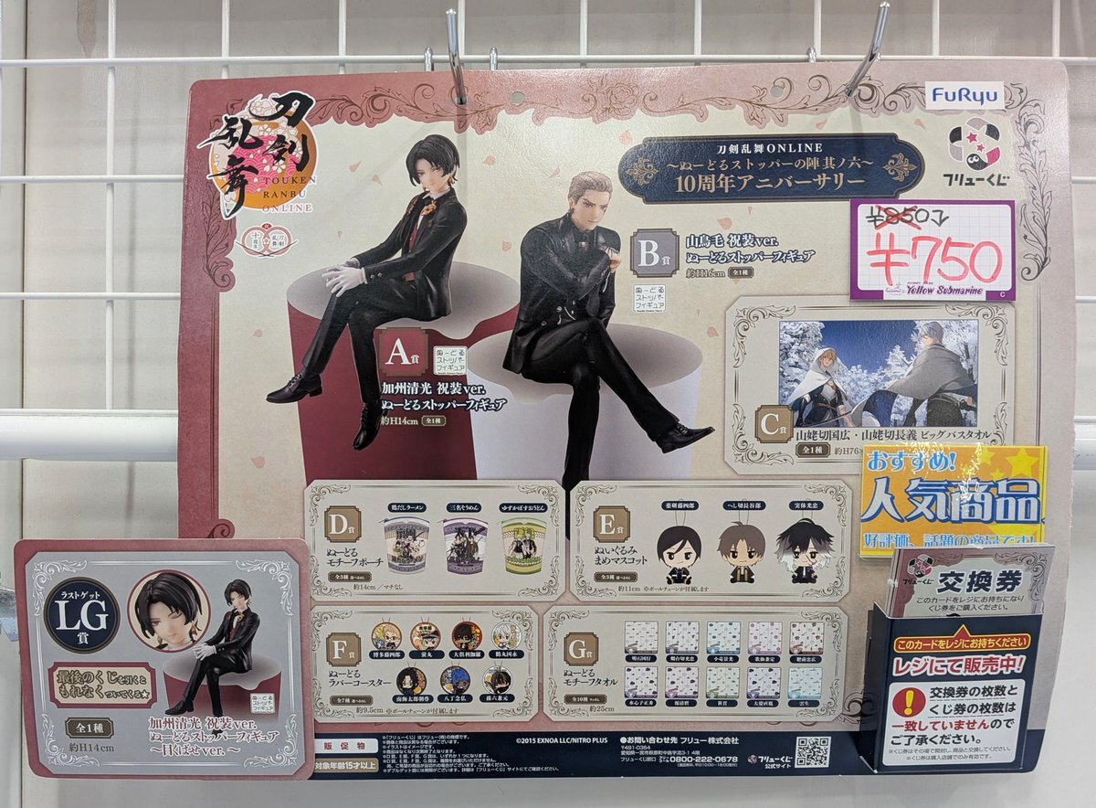 #フリューくじ #刀剣乱舞ONLINE ぬーどるストッパーの陣 其の六残り景品一覧となります! B賞が残り1つ、C賞は2つ残っております お求めのお客様はお早めにご来店下さい😆 #ワングー #石岡 #刀剣乱舞 #フィギュア #山烏毛 #加州清光 x.com/WG_ishioka/sta…