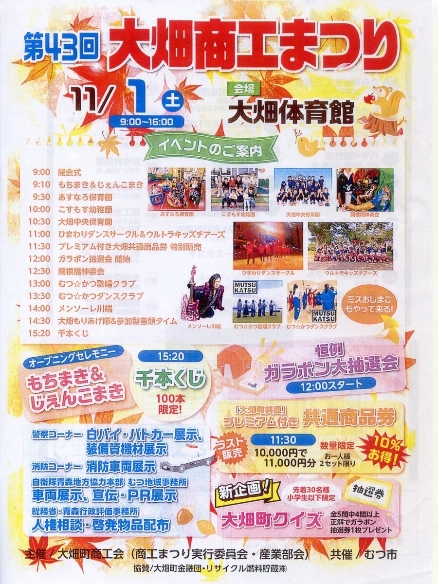 月が変わって早速11月1日(土曜日)と2日(日曜日)のイベントに出演します♬🫡 #加藤つとむ #大畑商工まつり #むつ市民文化祭 #下北合唱祭 #青少年の健全な育成 #地域盛り上げ隊 pic.x.com/mF8LI8bQLu