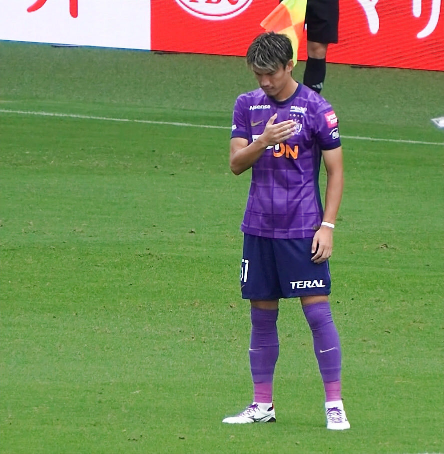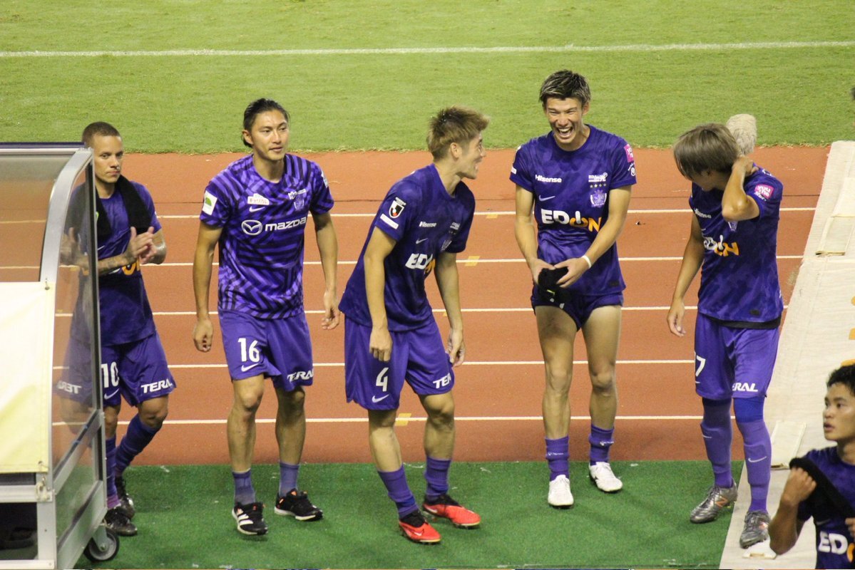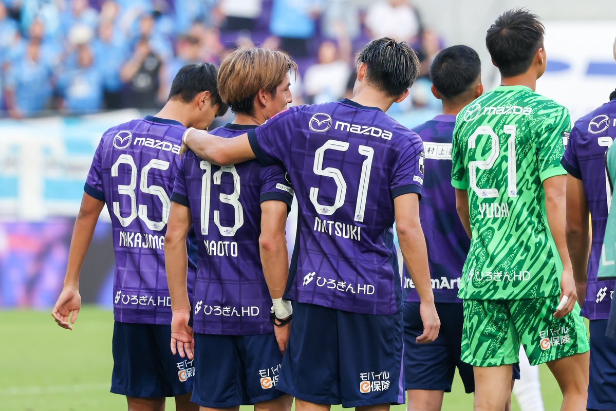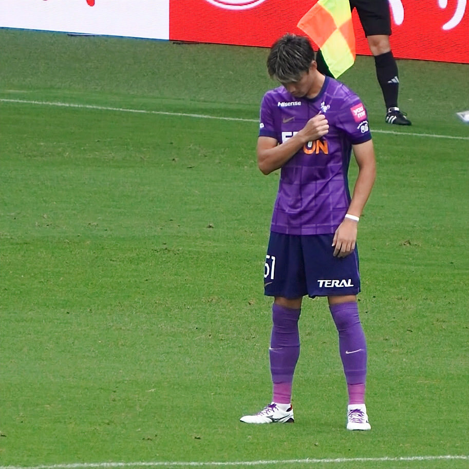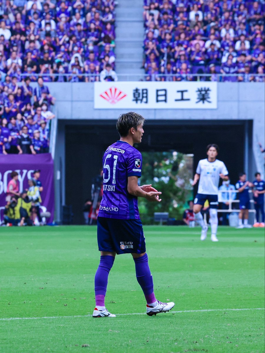 サイン入り弾2個片手持ち、強面構成員の皆さんと両の手で持ち立ち姿が美しい若者 20251012 横浜FC戦 #sanfrecce #塩谷司 選手 #トルガイアルスラン 選手 #菅大輝 選手 #前田直輝 選手 #中島洋太朗 選手