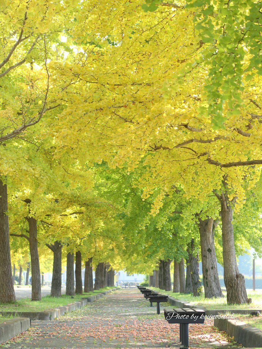 加須はなさき公園のイチョウ並木です。 まだ少し緑の部分もありますが陽の光を受けとても綺麗です😊 【2025.11.8撮影】 #加須はなさき公園 #加須はなさき水上公園 #加須市 pic.x.com/rjIQDl7VA0