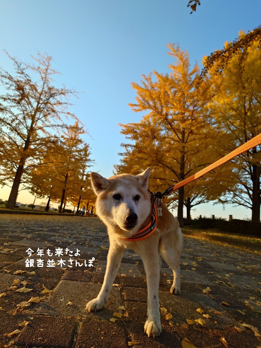 今年もイチョウ並木さんぽへ 駐車場に着いてもやる気なし…😅 ぎんなんを踏まないように歩くのは大変だー😣 #カイ15歳10ヶ月 #柴犬 #イチョウ並木さんぽ #加須はなさき公園 #来年も来ようね pic.x.com/gpgtBf9y21
