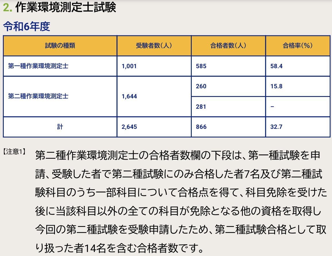 第1種作業環境測定士(有機)に合格しました。今年の2種合格者は昨年より更に少ないので合格率は既に10.6%ぐらいです。 ※画像はR6の合格率です ※第2種作業環境測定士の科目が合格(免除)、又は既に第2種作業環境測定士の資格を取得していないと第1種作業環境測定士が合格になりません #労働安全衛生法 pic.x.com/N9sY0jeAiU