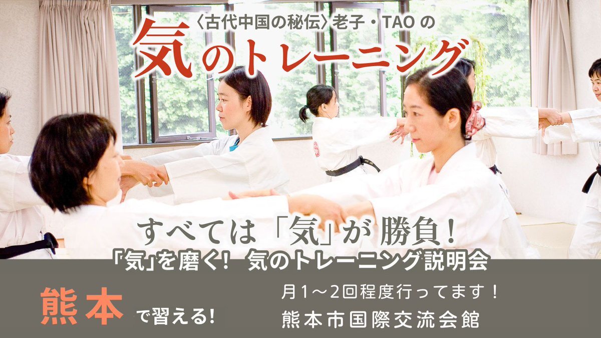 \⭐すべては「気」が勝負‼️⭐️/ 「気」を磨いて自分に強くなる❗ 内気な方、いじめられやすい子供も陽気に元気になり、危険から身を守る護身術としても人気! 熊本市国際交流会館で開催! 心よりお待ちしております jmty.jp/s/kumamoto/les… #熊本 #護身術 #動功術 #気功 #子供 #女性 #身を守る #TAO pic.x.com/9vmYj97uts