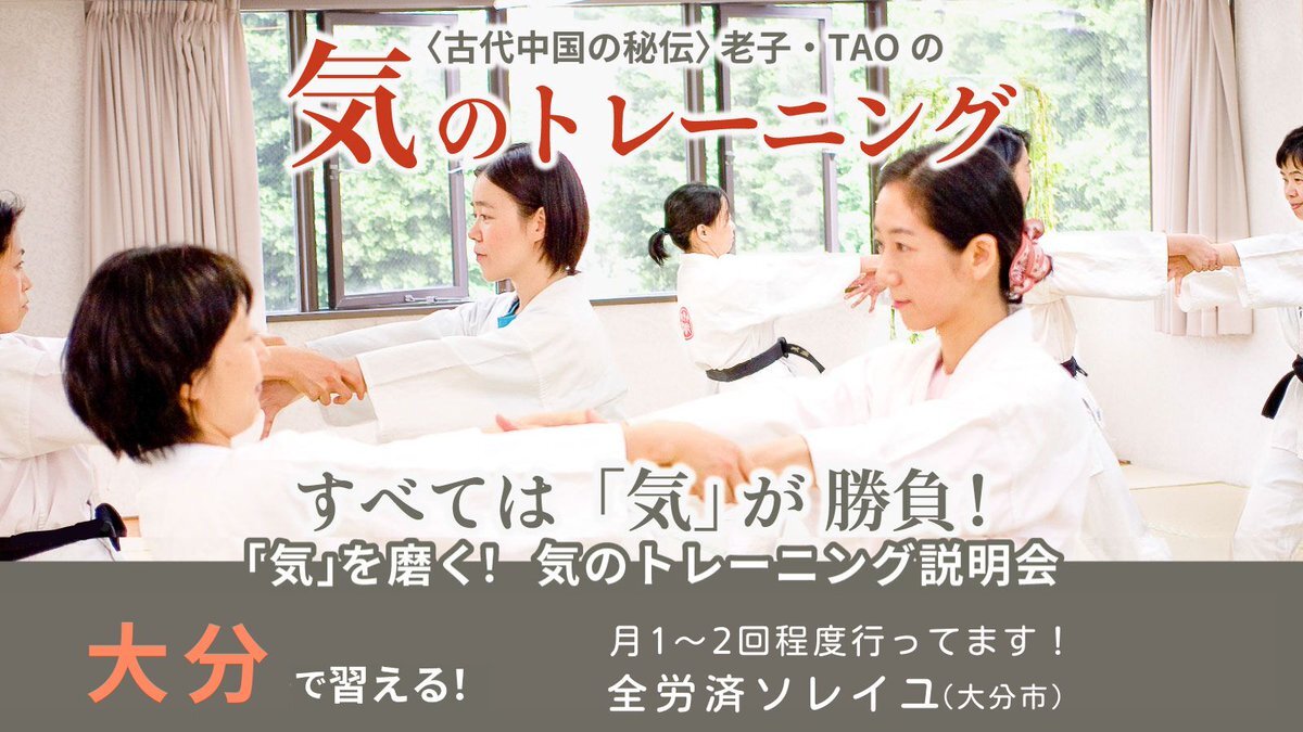 \⭐すべては「気」が勝負‼️⭐️/ 「気」を磨いて自分に強くなる❗ 内気な方、いじめられやすい子供も陽気に元気になり、危険から身を守る護身術としても人気! 大分市の全労済ソレイユで開催✨ ぜひお越し下さいませ jmty.jp/s/oita/les-spo… #大分 #護身術 #動功術 #気功 #子供 #女性 #身を守る #TAO pic.x.com/WQJ0B3SYgI