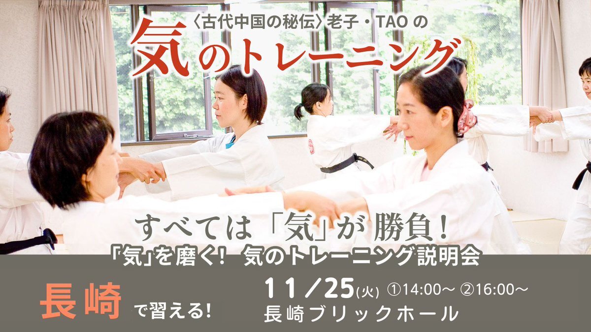 \⭐すべては「気」が勝負‼️⭐️/ 「気」を磨いて自分に強くなる❗ 内気な方、いじめられやすい子供も陽気に元気になり、危険から身を守る護身術としても人気! 11/25に長崎市で習える❗ ぜひお越し下さいませ✨ jmty.jp/s/nagasaki/les… #長崎 # #気功 #護身術 #動功術 #子供 #女性 #身を守る #TAO pic.x.com/zv9hL0S2JO