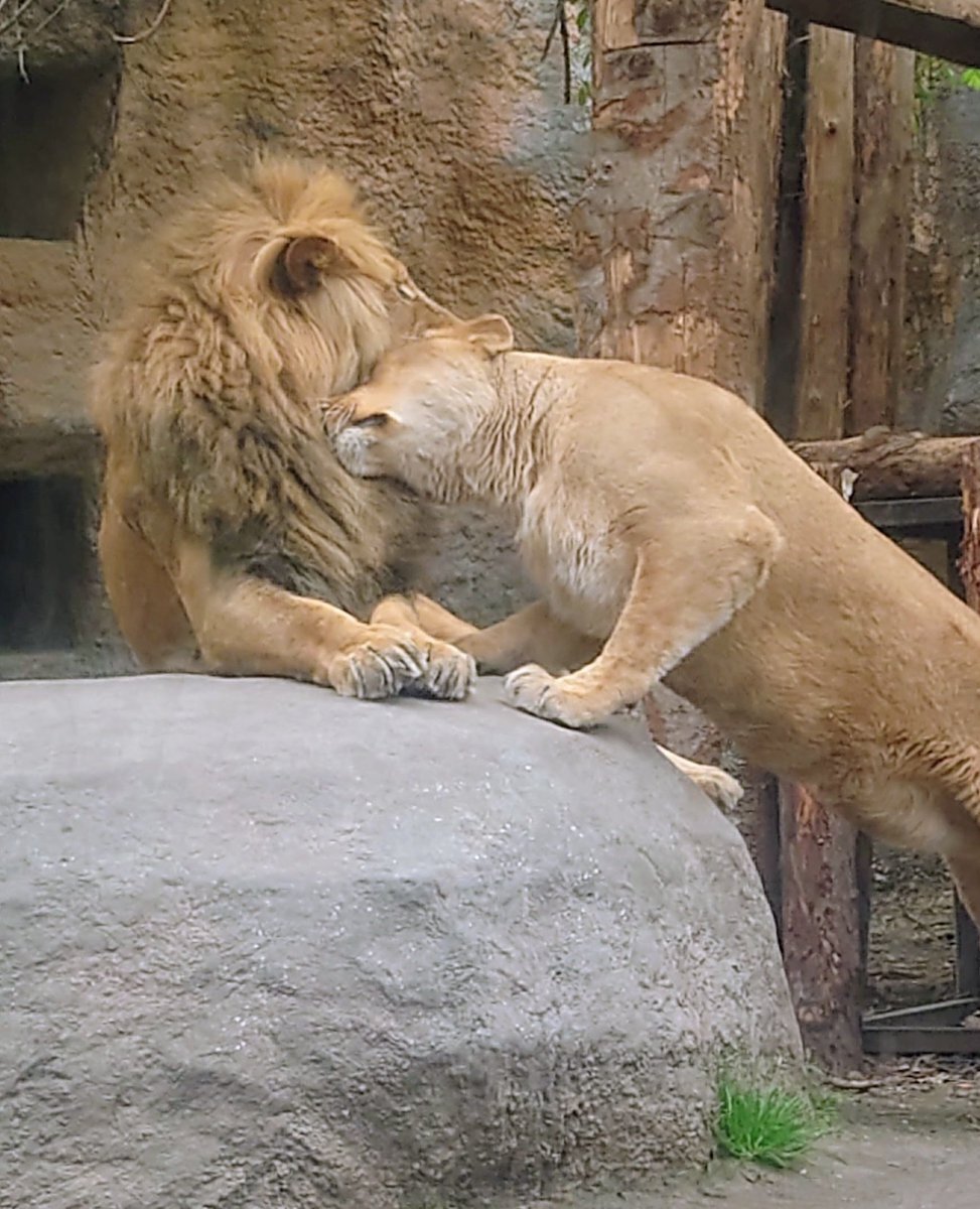 フクちゃん今日は、年のわりには毛並みがキレイだし、動きもいいねぇ〜と褒められていたね。ニノちゃんのお陰かな🤭 #ライオン #フク #ニノ #ズーラシア #ZOORASIA #動物園へ行こう pic.x.com/Y6qLdjGzrV