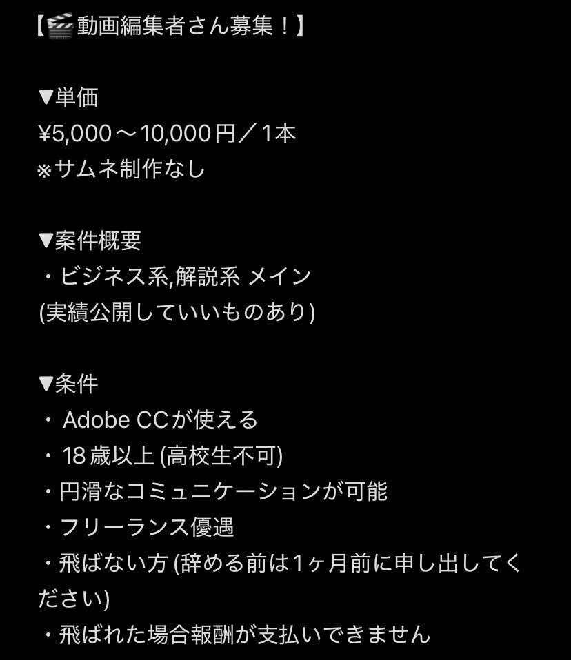 [動画編集者募集!] •バイク系ジャンル •カット済み素材(動画尺10分前後) •単価4000/本(税込) →ポートフォリオ等添えてdmまでご連絡ください。 #動画編集者募集 #動画編集案件