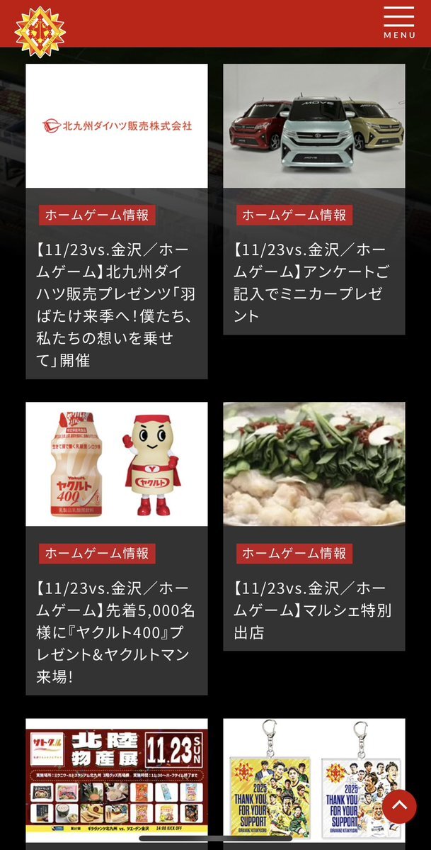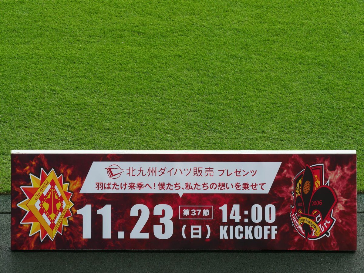 本日のマッチデーパートナーは 北九州ダイハツ販売株式会社 様です! ありがとうございます! 北九州ダイハツ販売プレゼンツ 「羽ばたけ来季へ!僕たち、私たちの想いを乗せて』 #ギラヴァンツ北九州 #giravanz #北九州金沢 pic.x.com/FgJ2pe8bl0