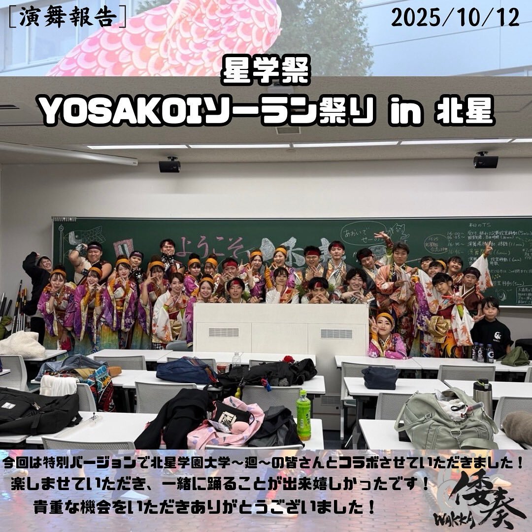 10月12日(日)に北星学園大学で行われました 『星学祭 YOSAKOIソーラン祭りin北星』にて演舞をさせていただきました!!☀️✨ 星学祭特別バージョンの廻の皆様とのコラボいかがでしたでしょうか?? 廻の皆様いつもありがとうございます! #倭奏 #yosakoiソーラン #北星学園大学 #星学祭 pic.x.com/e6UZz8XmAT