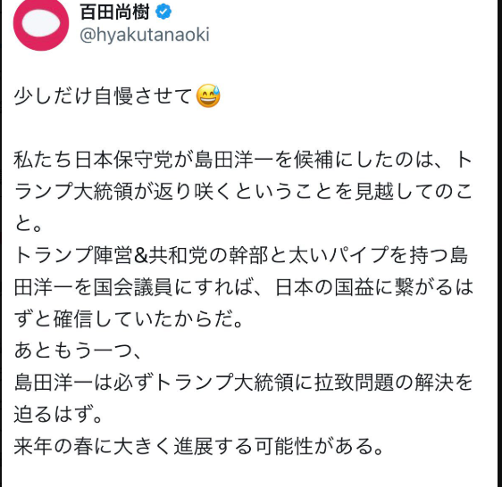 北朝鮮の日本人拉致事件解決へ向けた政治の実行力に期待し、私も微力ながら活動に注力を続けます。 タケノコ 日本保守党非公式応援チャンネル youtube.com/watch?v=Eup4-y… #日本保守党 #北朝鮮 #北朝鮮拉致問題 #拉致被害者一括帰国実現 #NorthKoreaAbduction #朝鮮総連解散 #北朝鮮制裁