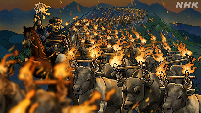 牛に松明って倶利伽羅谷の木曽義仲かよ^^;無理だな。角に火をつける前に牛🐮暴れるよ… #歴史探偵 #伊勢宗瑞 #北条早雲 #木曽義仲 #倶利伽羅峠 #火牛の計