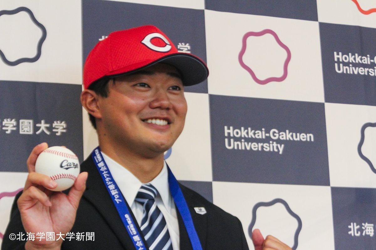 【note更新】 本日(10月28日)、北海学園大学において指名挨拶が行われました。 #広島東洋カープ 4位指名の #工藤泰己 、#オリックス・バファローズ 5位指名の #髙谷舟 が参加しました。 #北海学園大学新聞 記事は以下のリンクから! note.com/lucky_minnow28… pic.x.com/s9lbqrV1Fi
