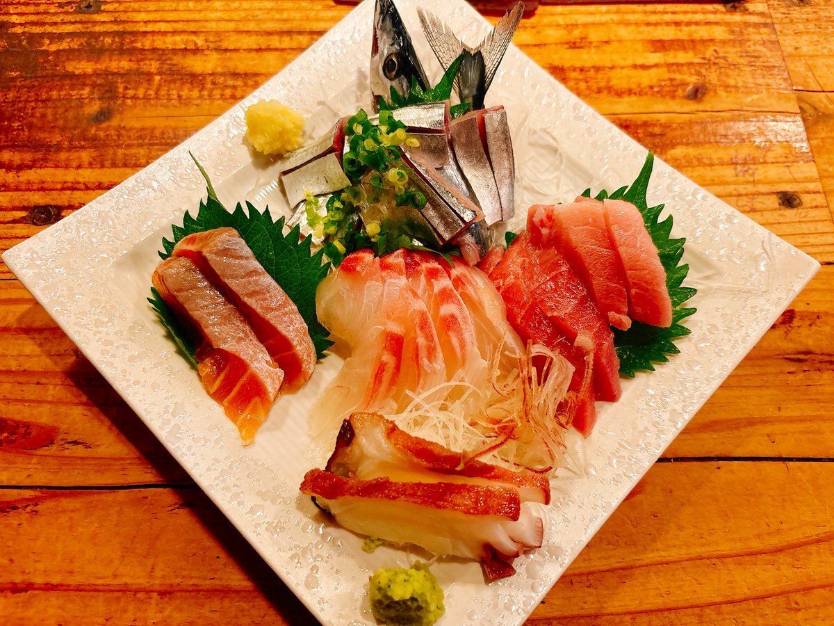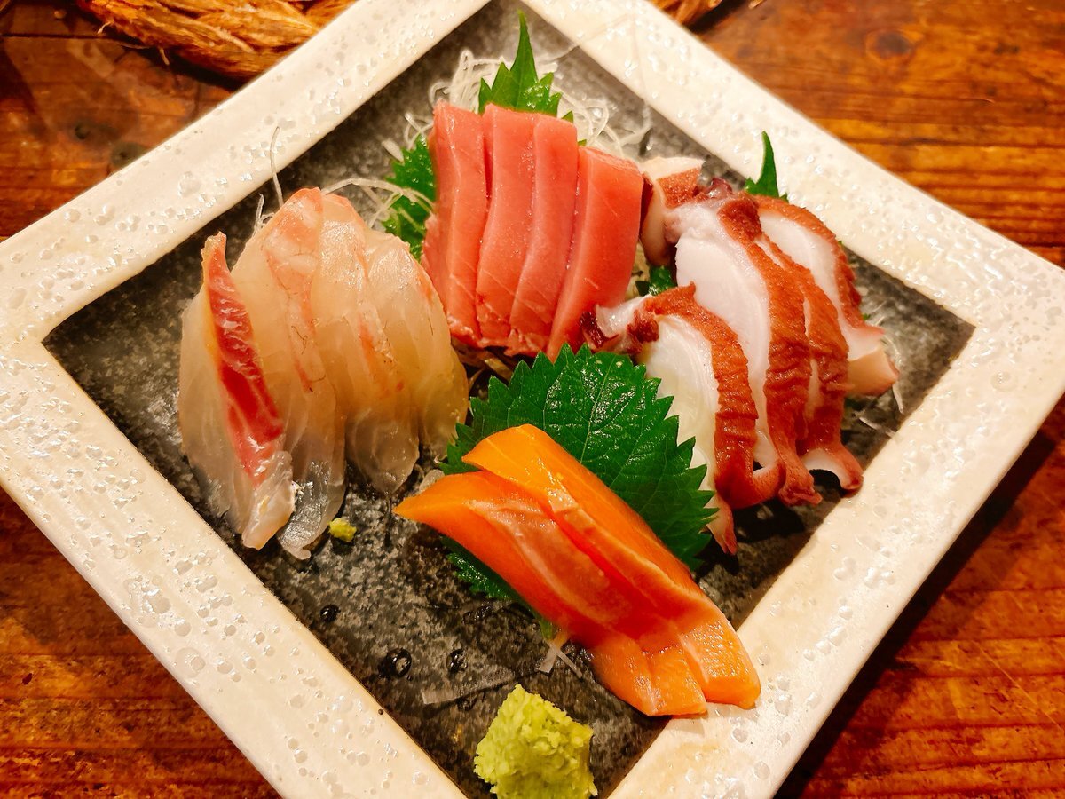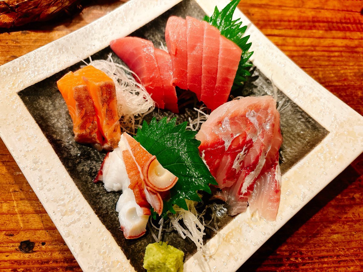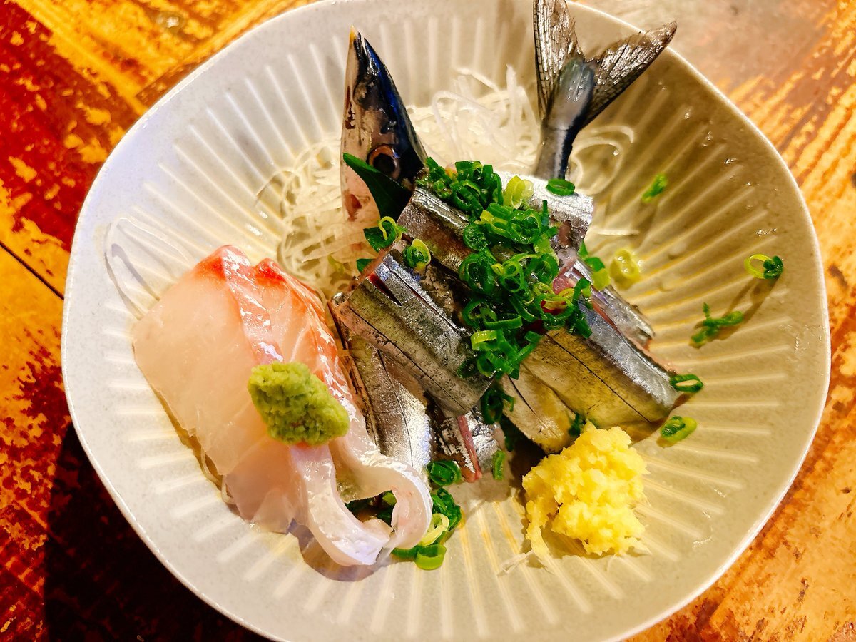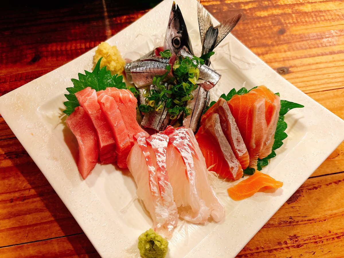 お刺身盛り合わせ 秋刀魚、鯛こぶ〆、本マグロ、サーモン、タコ #蓮根 #居酒屋 #北海道根室 #溝の口 #田園都市線 #南武線 pic.x.com/nrykndvHEE