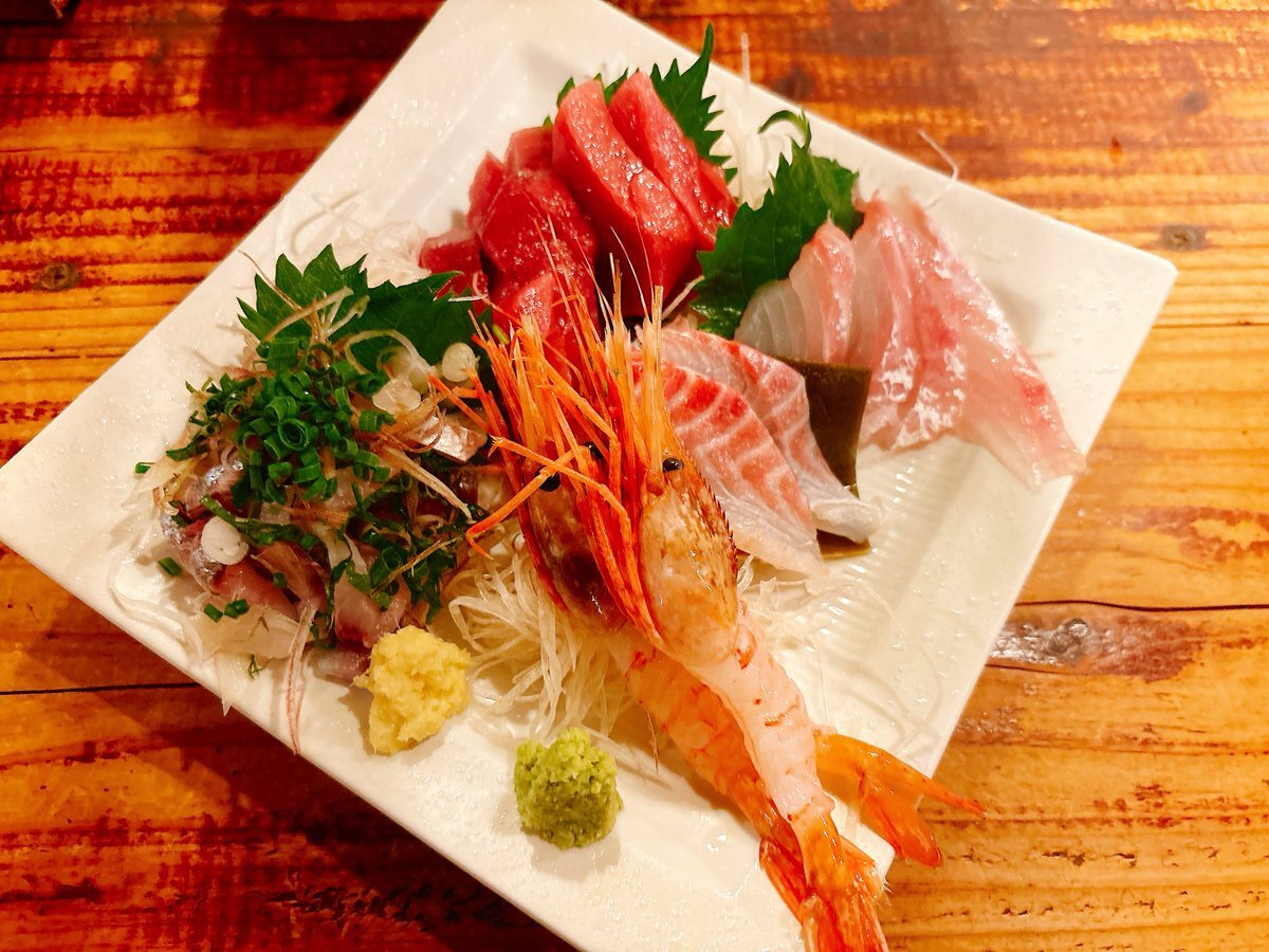本マグロ、タコ、鯛こぶ〆、あじたたき、サーモン、ボタンエビ #蓮根 #居酒屋 #北海道根室 #溝の口 #田園都市線 #南武線 pic.x.com/AoKl9b1Ywf