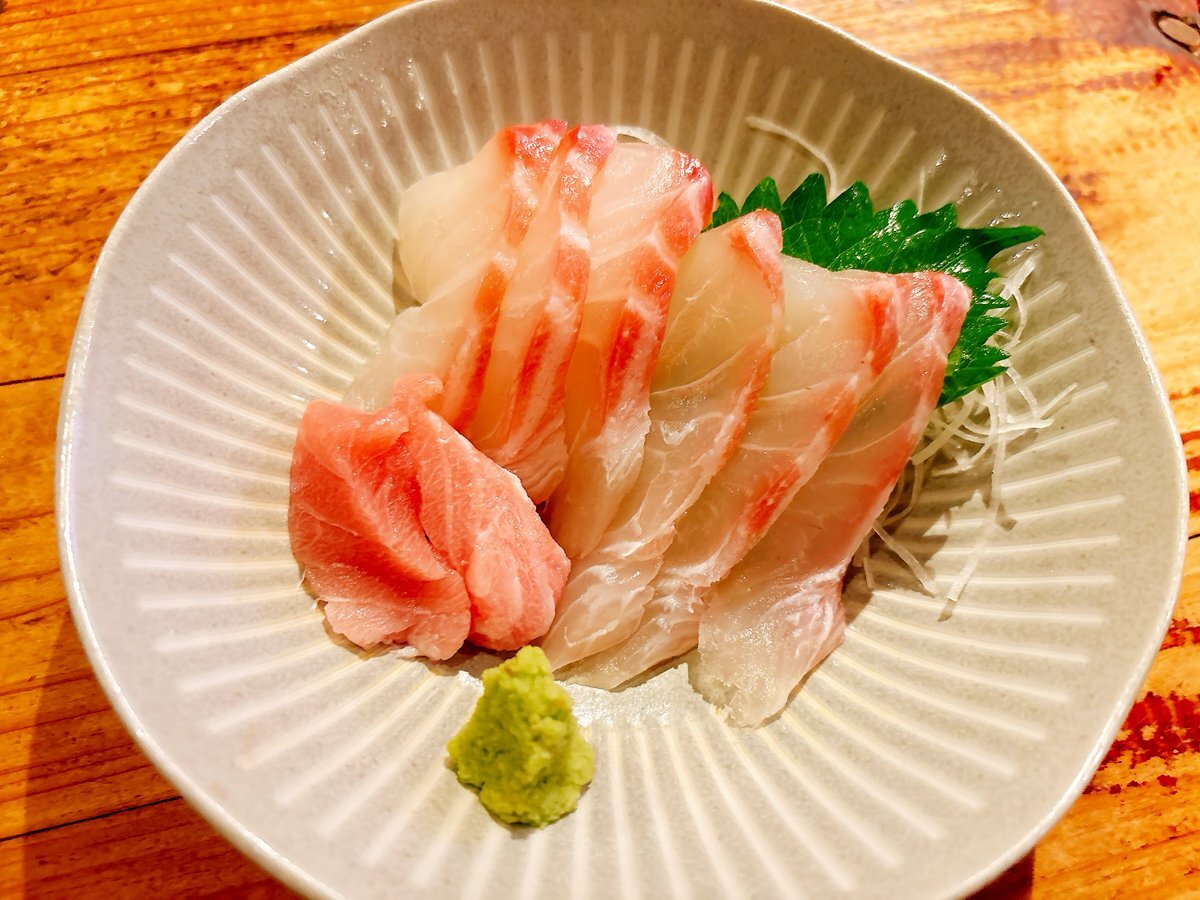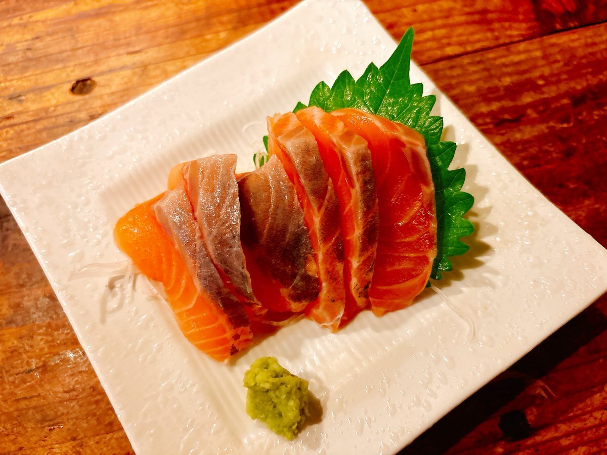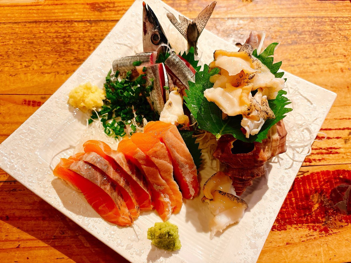 お刺身盛り合わせ サーモン、ホッキ貝、鯛こぶ〆、本マグロ、秋刀魚 #蓮根 #居酒屋 #北海道根室 #溝の口 #田園都市線 #南武線 pic.x.com/Rsjp9RfPBL