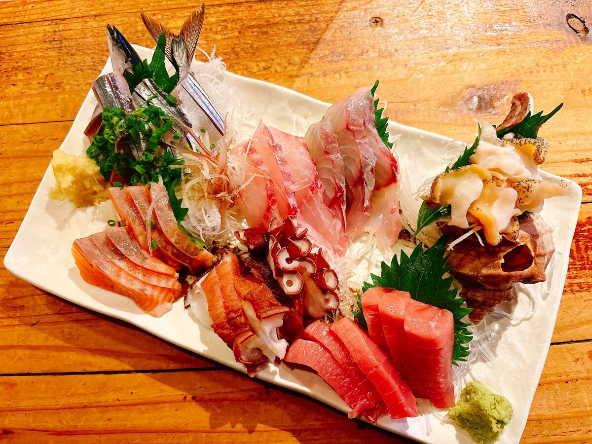 お刺身盛り合わせ 秋刀魚、サーモン、ほうぼう、タコ、本マグロ、つぶ貝、ボタンエビ、エゾアワビ #蓮根 #居酒屋 #北海道根室 #溝の口 #田園都市線 #南武線 pic.x.com/LZOdKdaHdc
