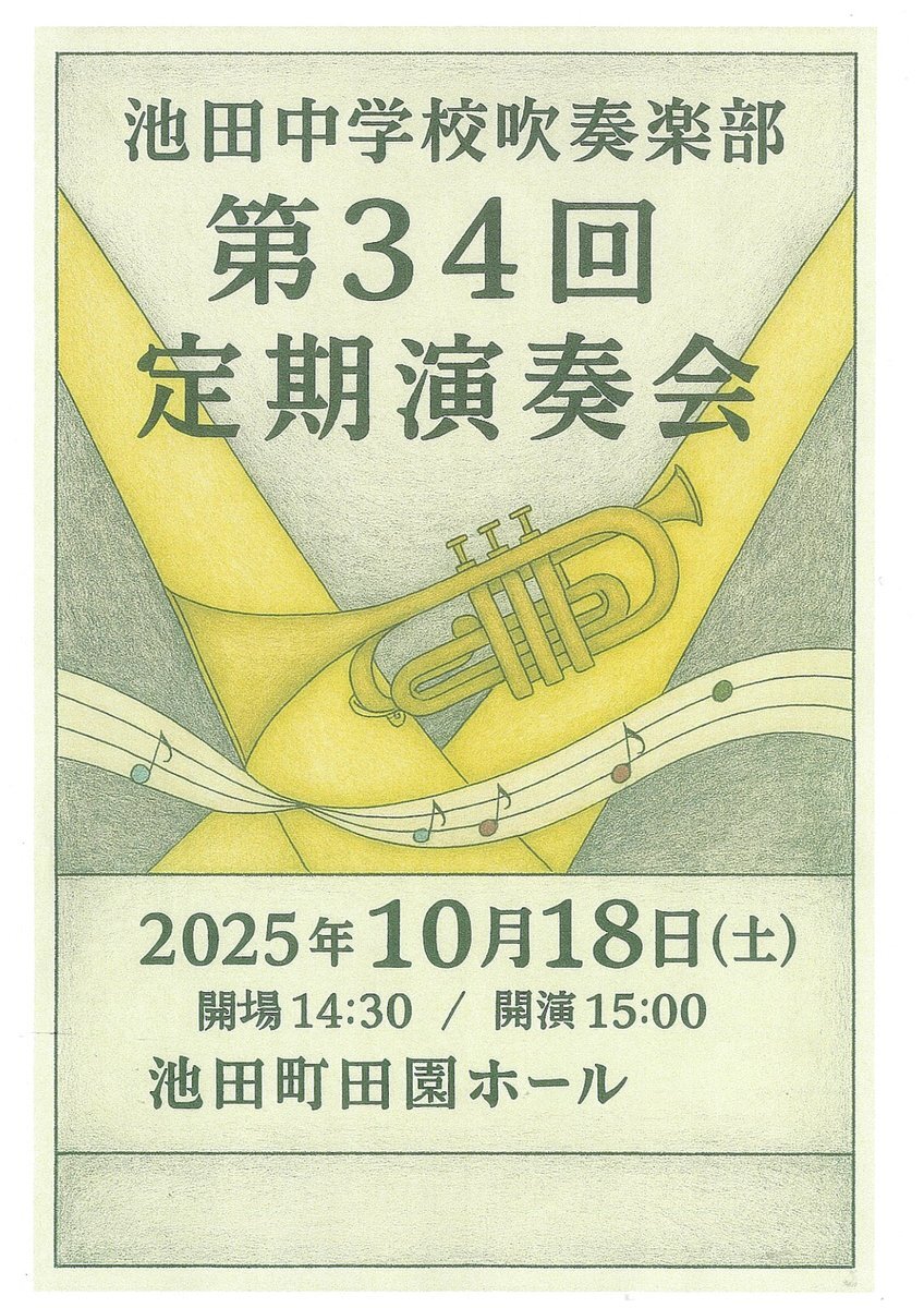 【池田中吹奏楽部定期演奏会開催のお知らせ】 #池田中学校 #吹奏楽部定期演奏会 が下記の通り開催されます。 ●日時 10/18(土) 開演15:00 ●会場 池田町田園ホール ●入場無料 お誘い合わせの上、ぜひ会場で生徒たちの頑張りを音楽で感じてください♪ #北海道池田町 #北海道 #道東 #十勝 #池田町 pic.x.com/DRtp53nj6S