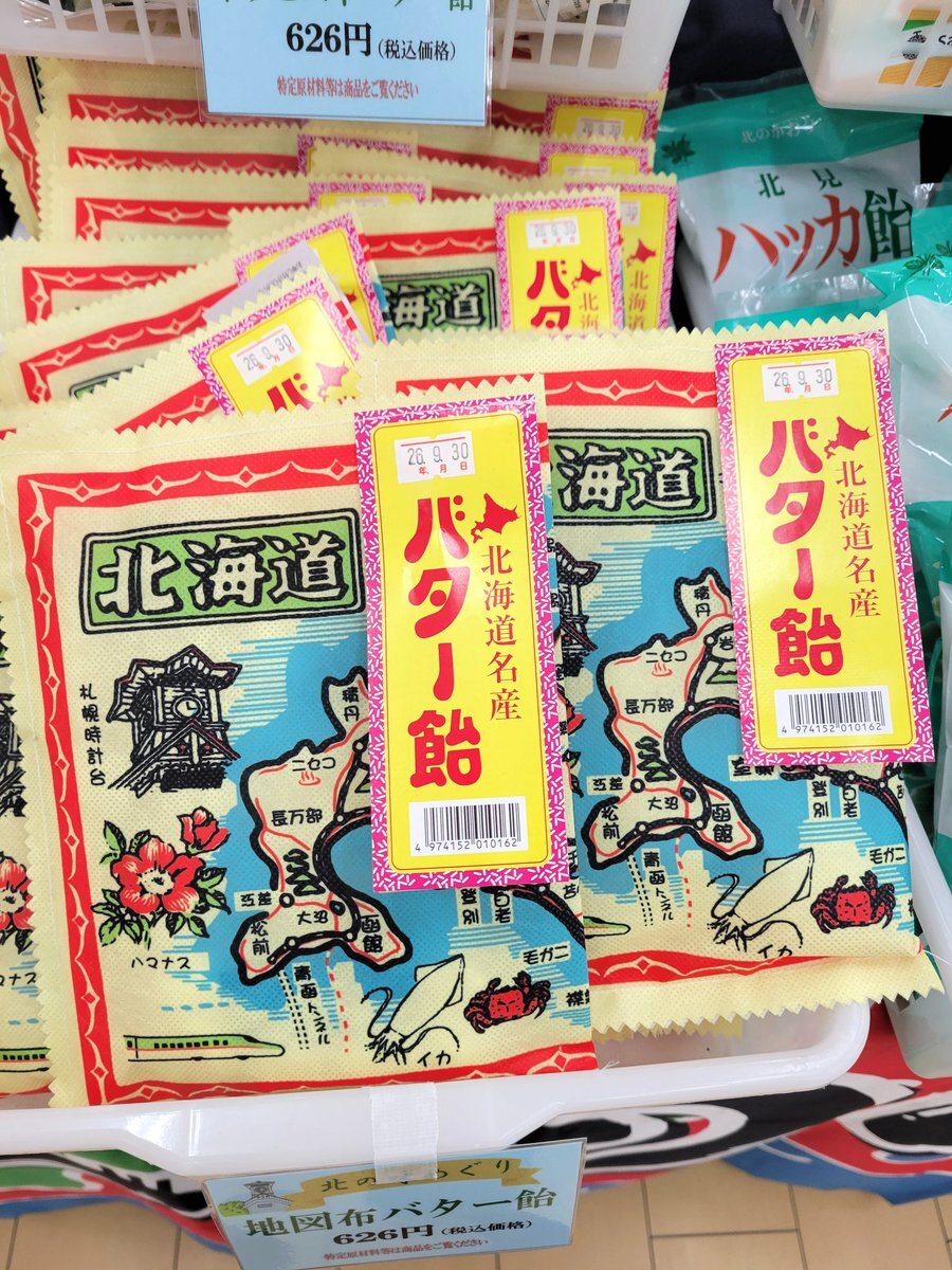 北海道物産展やってやがった❗😫 このパケージのバター飴食べた事ある人🙋💦ナツー そして限定に弱いオッサンはまんまとラーメンを買うのでした😅 まだ肩痛くて自転車乗れなーい😭 本日も皆様お疲れ様でしたー😆✨🍻🎶 #北海道物産展 pic.x.com/8uNFXJ15h2