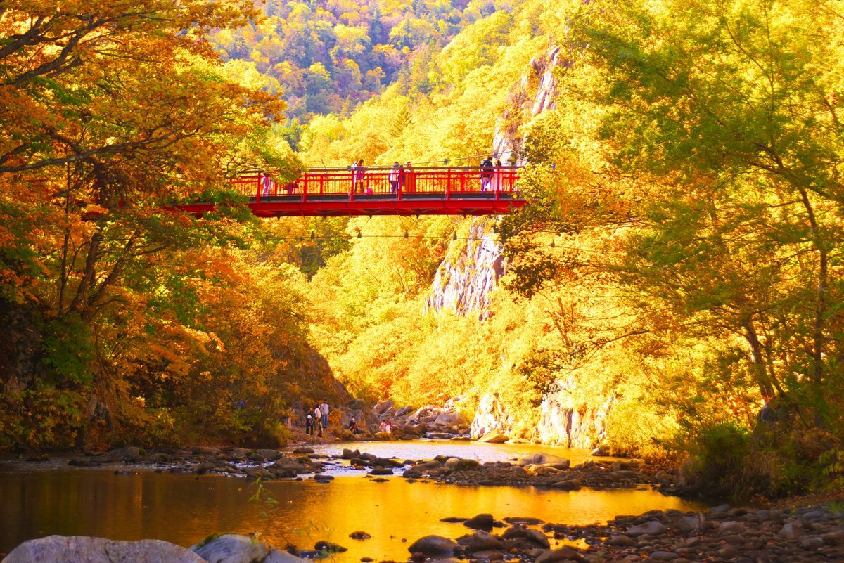 【定山渓屈指の紅葉広がる二見吊橋(ふたみつりばし)】 札幌の奥座敷として知られる定山渓。紅葉の名所が点在する定山渓の中でも、特に人気が高いのがこの二見吊橋の紅葉。豊平川に架かる真っ赤な橋と自然のコントラストが◎ 秋だけでなく、夏や冬など四季折々の景観にも定評あり。#北海道絶景 pic.x.com/Lb3DDfJRnp