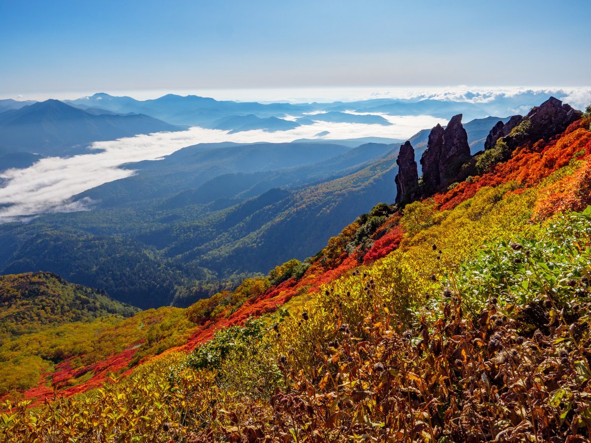 【黒岳から見える紅葉と雲海@上川町】 黒岳は大雪山の北東に位置する標高1984mの山⛰️ 層雲峡からはロープウェイも出ており、初心者でも比較的簡単に登山できる山として人気があります😊 日本一紅葉の早い場所としても知られ、なんと例年9月上旬頃から紅葉が見られます🍁#北海道絶景 pic.x.com/xqvDOFqL5v