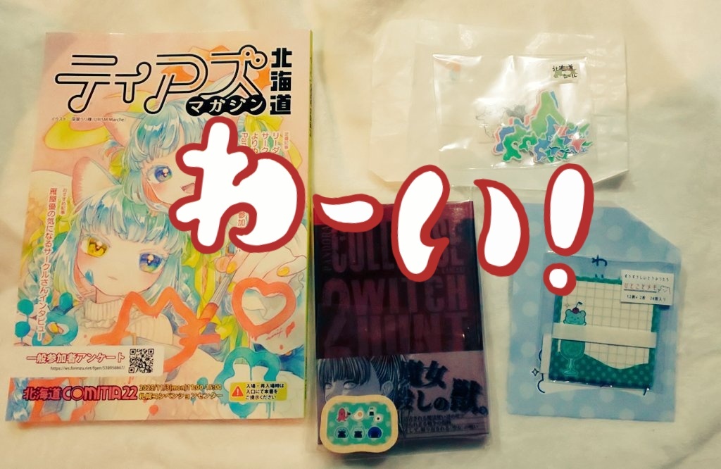 画質とかもろもろ酷いことになってるけど戦利品だあ☆ #北海道COMITIA22 pic.x.com/yRnZ1uLqMq