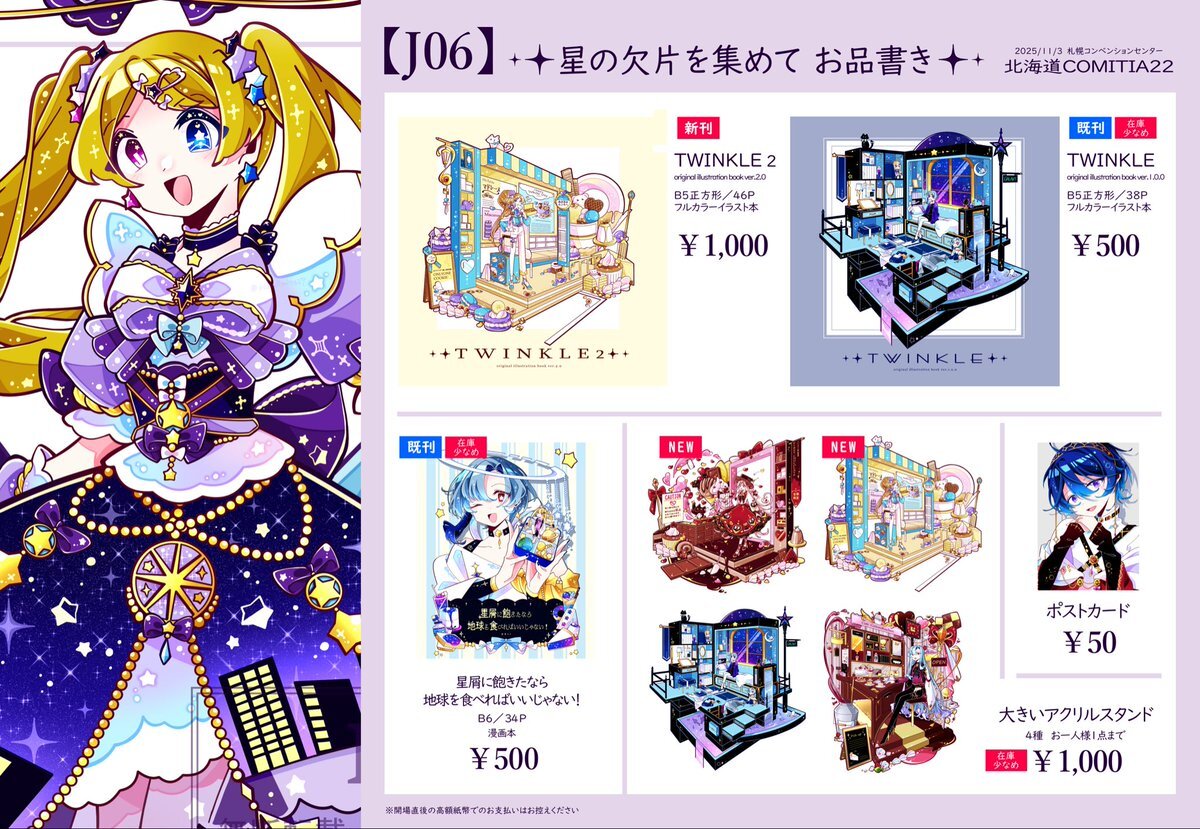 【お知らせ】 11/5開催の北海道コミティア22のお品書きになります💫 【J06】です! よろしくお願いいたします💫 (商品画像など、準備出来次第こちらのツリーに繋げていきます) #北海道コミティア22 #北海道COMITIA22 #北ティア