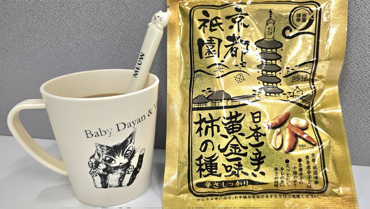 #柿の種 #日本一辛い #黄金一味 #北野エース #辛いもの好きと繋がりたい 朝の小休止☕🎶 モーニングコーヒーと一緒に… 京都祇園「日本一辛い」黄金一味柿の種🥜🔥 北野エースで「日本一辛いってマジか…」ってネーミングに負けて即買いしたやつ😂 pic.x.com/oQomIaxzyf