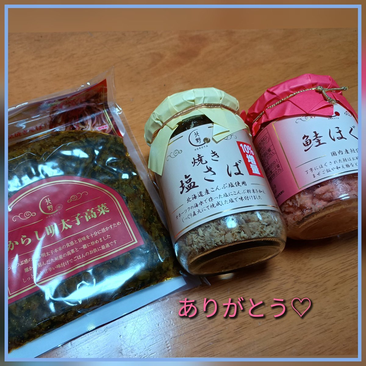 @kitano_ace さまの #ごはんのおともだち教えてくださいキャンペーン にてからし明太子高菜、塩さば、鮭ほぐしを頂きました❢地元の百貨店さんに #北野エース さまがありますのでお買い物させて頂きます🤗ありがとうございました🍚🥢✨ #当選報告 #当選品 #懸賞好きさんと繋がりたい pic.x.com/NnzKWWkADU