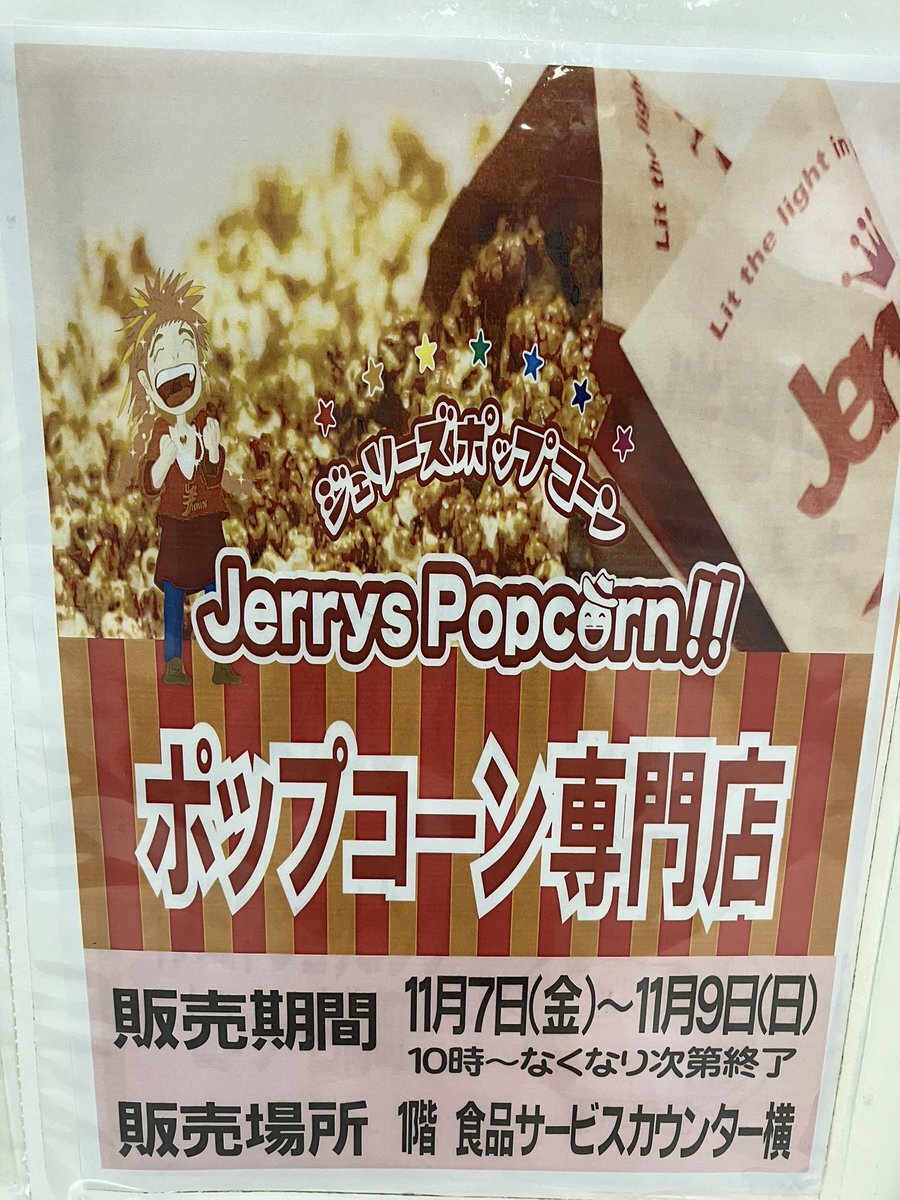 イズミヤ白梅町店での出店は年内最終日🐼 18時まで1階食品サービスカウンター横🍿 #イズミヤ白梅町店 #イズミヤ #ジェリーズポップコーン #ポップコーン屋さん #京都 #京都市 #北野白梅町 #期間限定 #ラスカル #3時のおやつ #ポップコーン好きと繋がりたい pic.x.com/Kdf78RUuM3