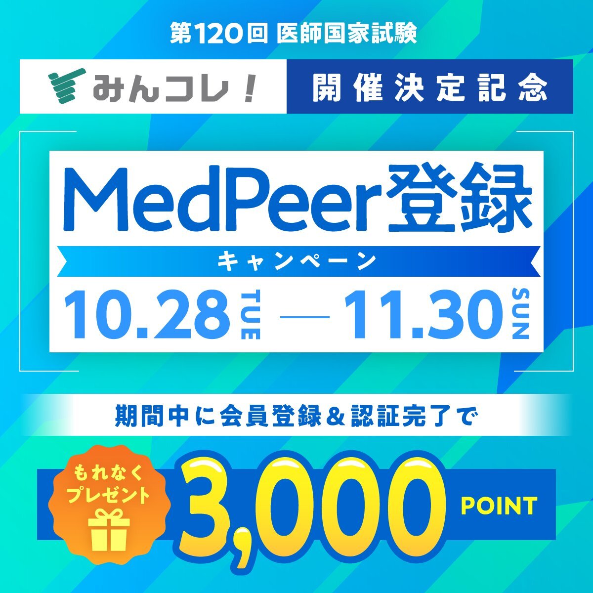 💥国試受験生必見💥 将来が少し不安なあなたへ。 #みんコレ! を利用できる #MedPeer には医学生に役立つコンテンツ多数✨ 今なら登録&認証で3,000ptプレゼント🎁 🗓 11/30まで 👉 medpeer.jp/s/minkore120 #医師国家試験 #国試対策 pic.x.com/YLzImZS1JG