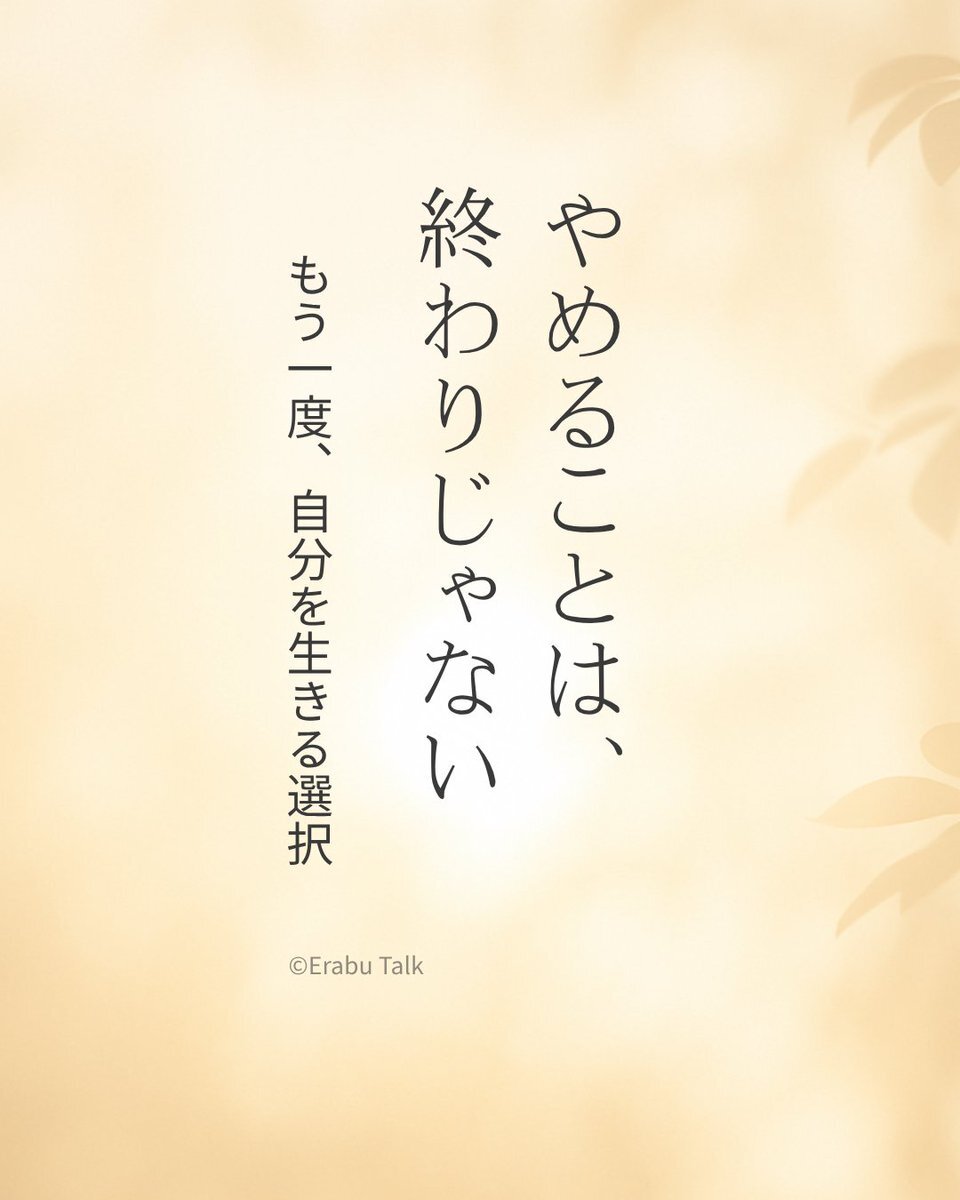 「やめる」ことは、 新しい生き方を選びなおすこと。 →noteで読む note.com/erabutalk #やめる勇気 #医療の成熟 #人生の選択 #ErabuTalk #患者支援 pic.x.com/SjqWNcoFFL