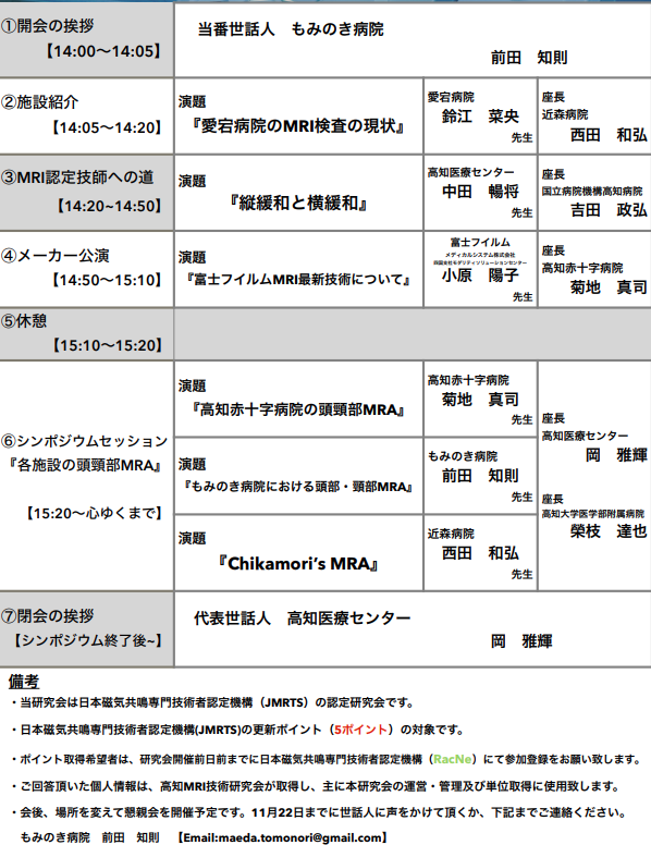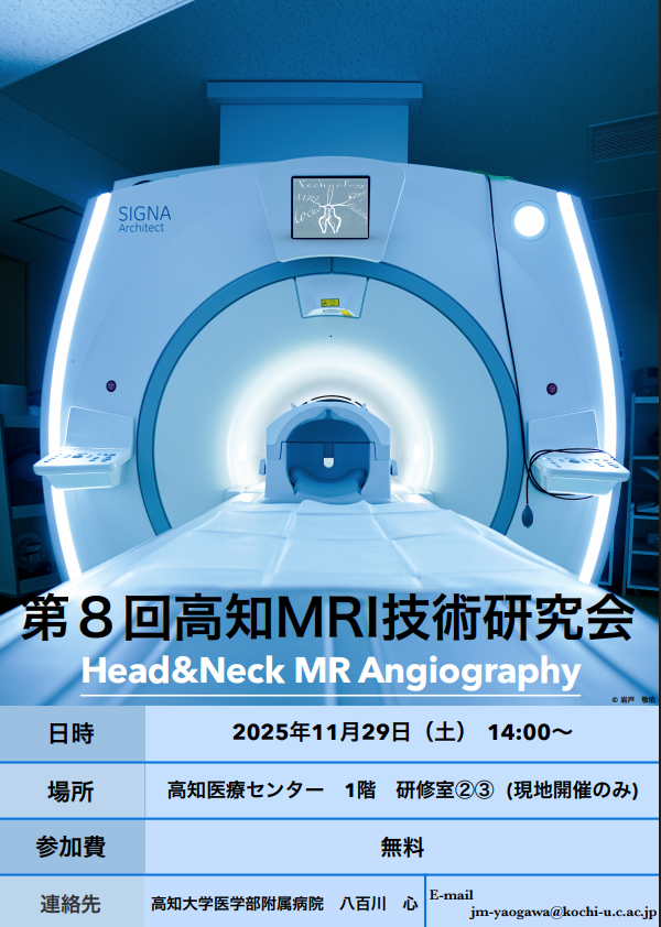 🧠【MRI頭頸部MRA特集シンポジウム開催!】 2025年11月22日(土)14:00〜 高知・もみのき病院 「各施設の頭頸部MRA」実演講演あり 現地+認定ポイント対応(JMR認定) 📩参加申込・詳細は画像にて! #MRI #MRA #放射線技師 #JMR認定 #高知 #医療技術 pic.x.com/UuNg1mW7lf