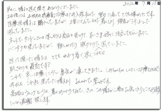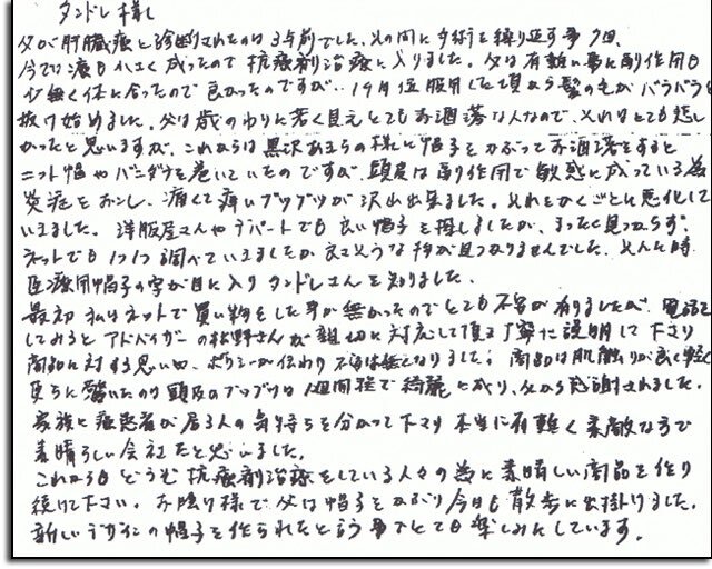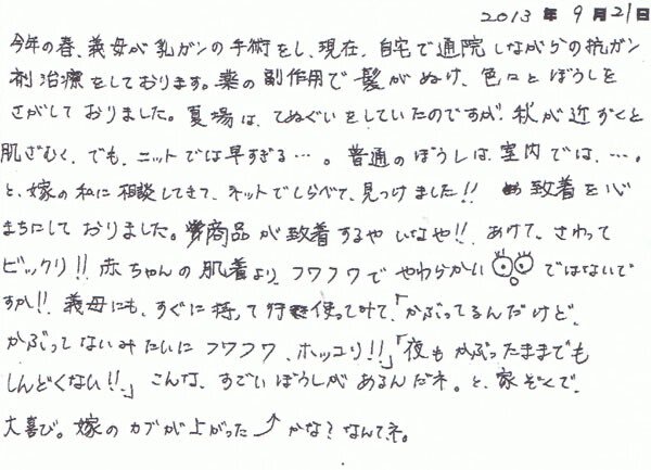 「頭皮は副作用で敏感に成っている為炎症をおこし、痛くて痒いブツブツが沢山出来ました」 「商品は肌さわりが良く軽く 更に驚いたのは頭皮のブツブツは1週間程で綺麗に成り父から感謝されました」 N・H様からのお声です tendre.org/hpgen/HPB/entr… #医療用帽子 #オーガニックコットン #敏感肌対応 pic.x.com/fJuV8JTnpH