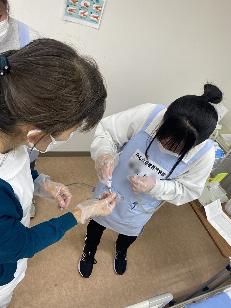 ある日の授業風景⑩【#医療的ケア】#気管カニューレ の 演習を行いました。先生から一連の指導後、グールプ毎に我校のモデル神流さんで演習。気管内部、管を挿入する長さと時間を確認。両手の使い分け、清潔に厳しい指導が入ります!利用者への声がけも重要!!学生同士確認しながら丁寧に行いました。 pic.x.com/wIM1DedbRL