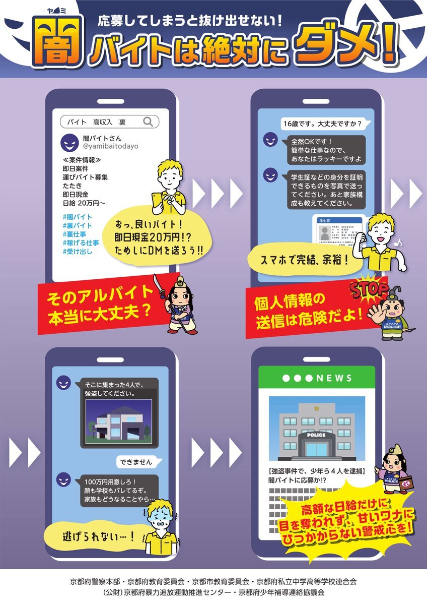 また、脅迫などを受け、組織を抜け出せないという人は、近くの警察署等に相談してください。犯罪に関与すると、一生後悔するなど取り返しのつかない結果になります。今ならまだ間に合います。 #BAN闇バイト #犯罪実行者募集情報 #匿名・流動型犯罪グループ #即日現金 #簡単高収入 pic.x.com/HRsL3aZ8Sr