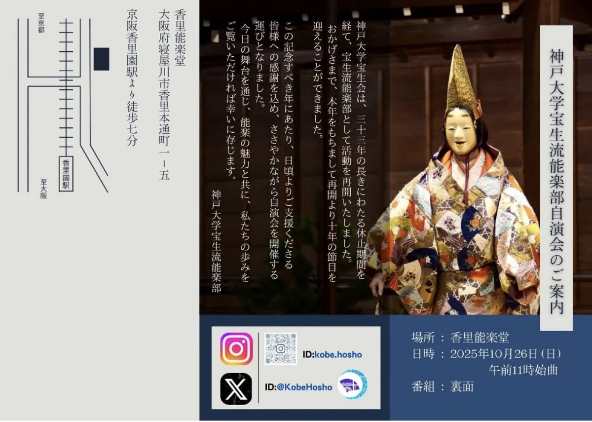 10月26日(日)、神戸大学宝生流能楽部さんの「復活10周年記念自演会」の取材に行ってきました🖋️ 能楽堂で部員の皆さんが渾身の演舞を披露してくださり、動画で観るのとは違いとても迫力がありました✨ 詳しくは近日発行予定の新聞記事にて🗞️ #十周年記念 #自演会 #香里能楽堂 #神戸大学 #神戸大 x.com/KobeHosho/stat…