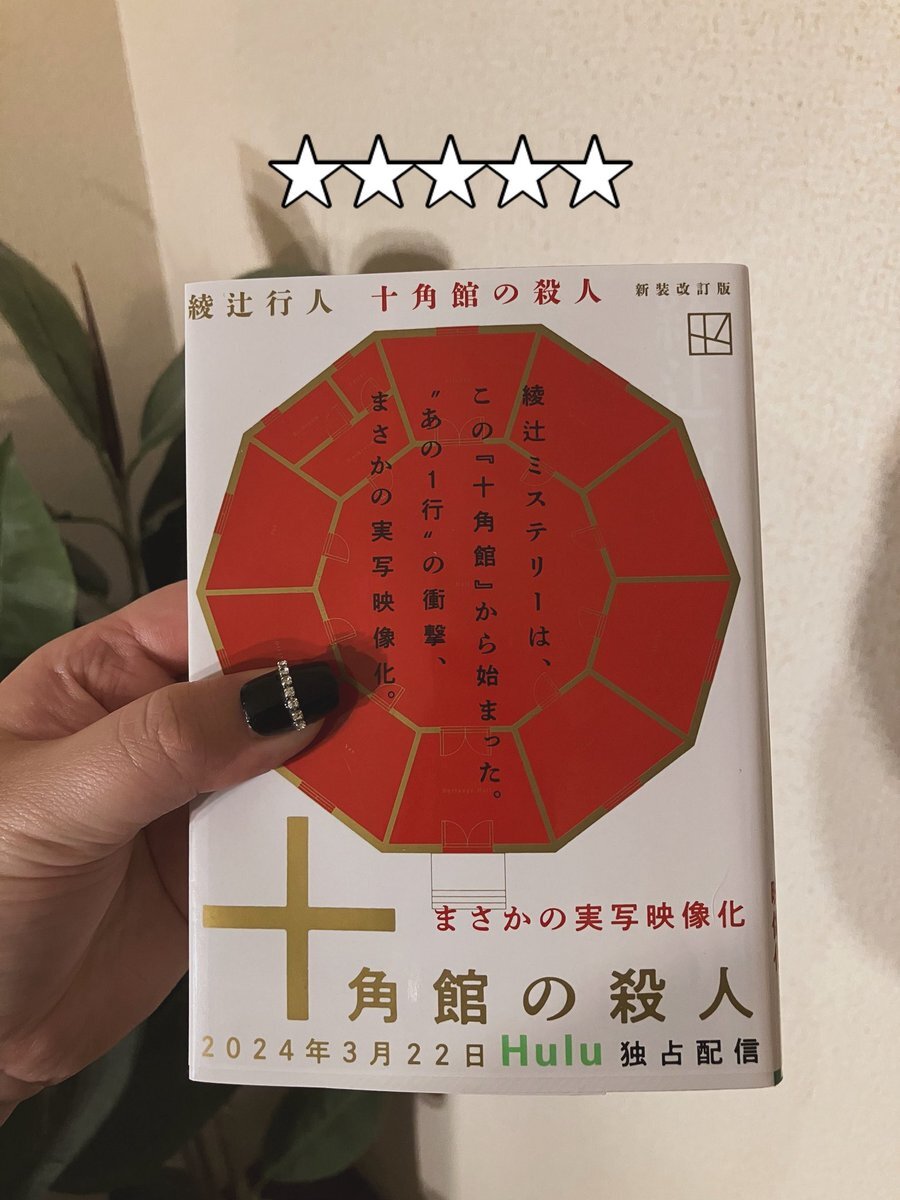 #十角館の殺人 #読了 #綾辻行人 新本格ミステリブームを巻き起こし、今でも大人気の館シリーズ始まりの十角館。 あの一行とかドンデン返しとか聞きすぎているだろうけれど、気にせず物語に身を委ねて読んでほしい。間違いなく面白いです。 ミステリにハマるきっかけにもなってほしい。 pic.x.com/g3qMZNSLwf