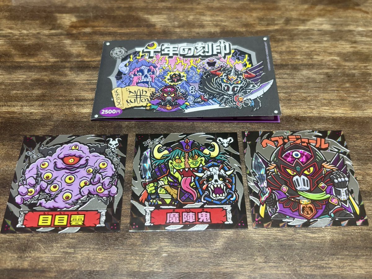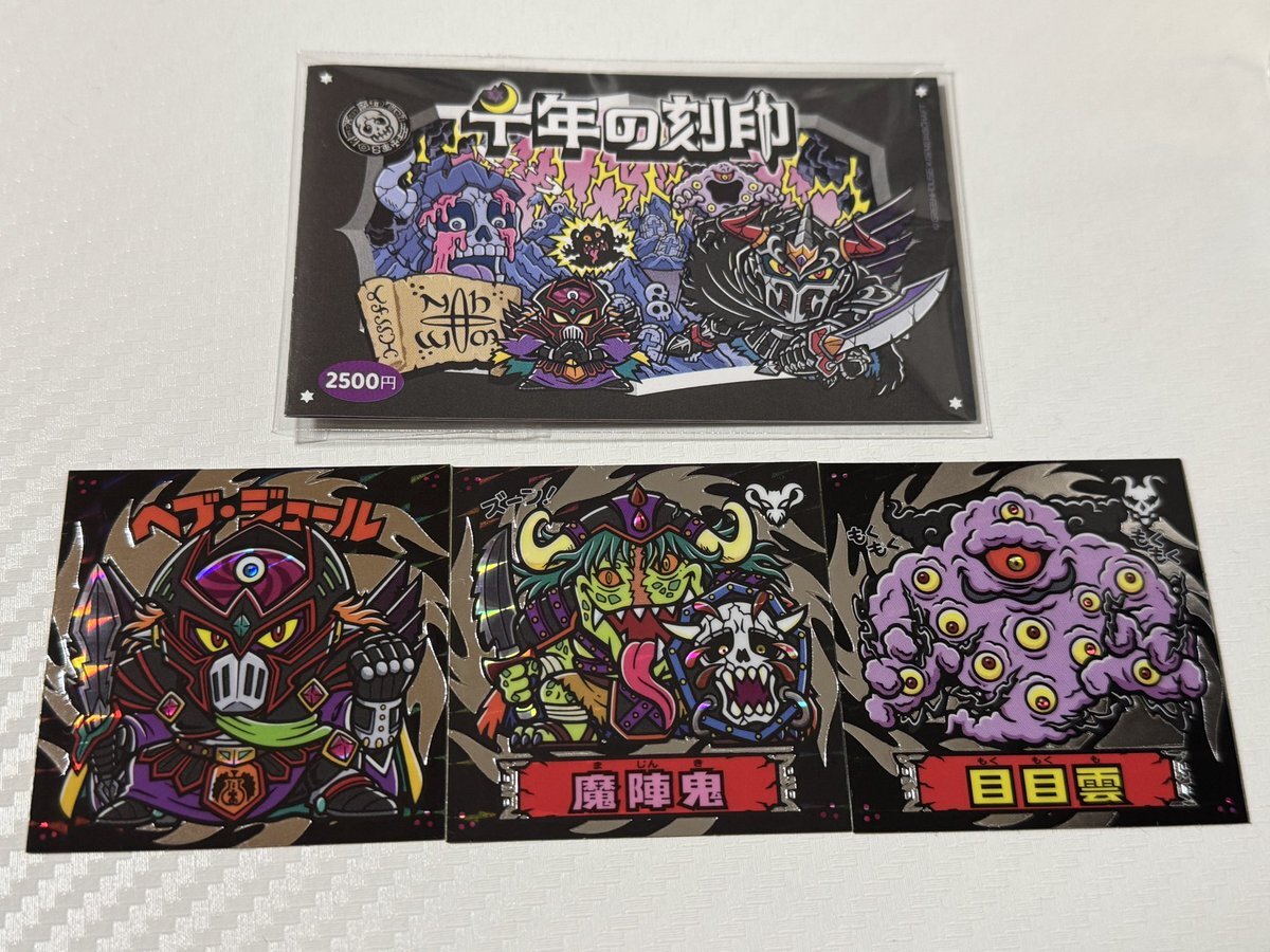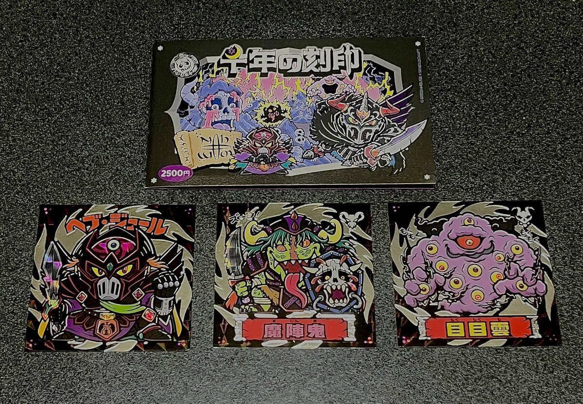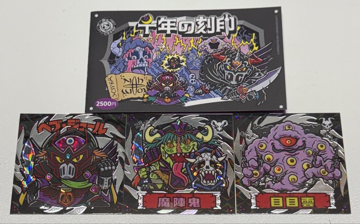 【千年の刻印】ドォルキー・モーの配下が届きました✨️今回も三者三様の魅力が詰まっていますね😁 @Gemein_schaft_ さんこれからも楽しみにしています〜😊 #ビックリマン #ひろひろのビックリマン #千年の刻印 #ゲマインシャフト pic.x.com/0AmLofR3Mm
