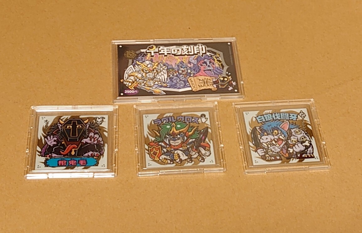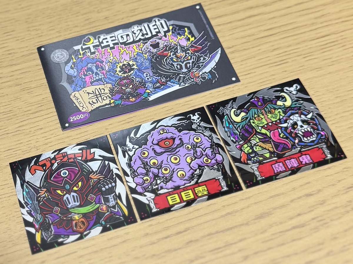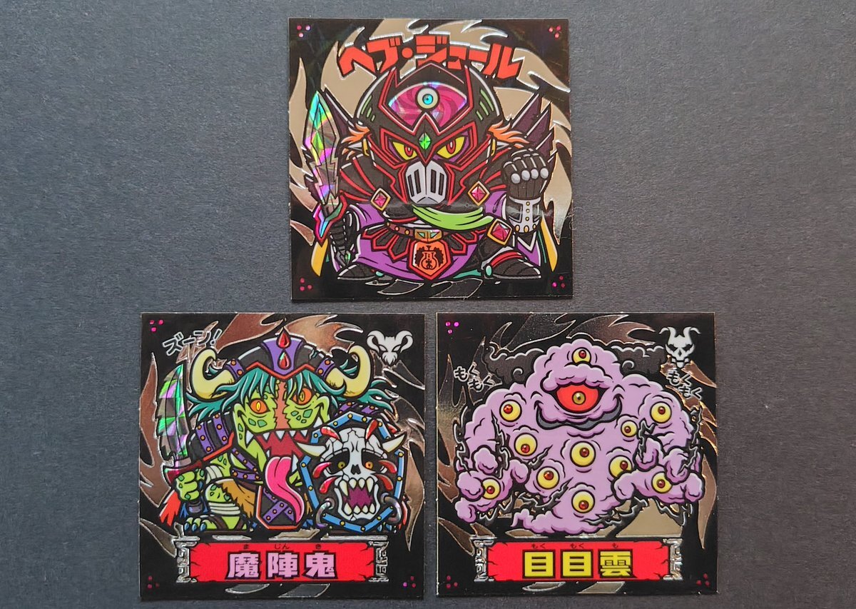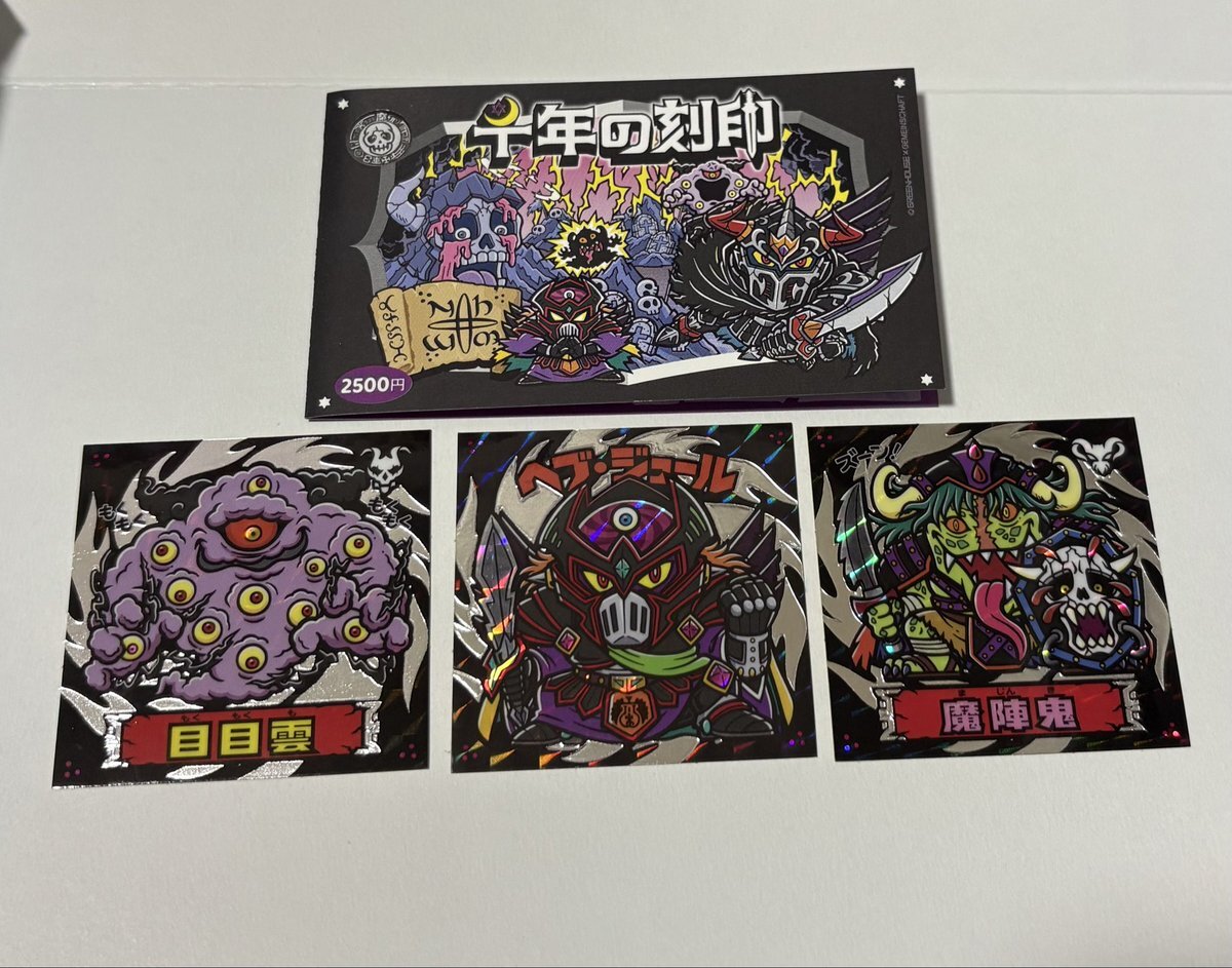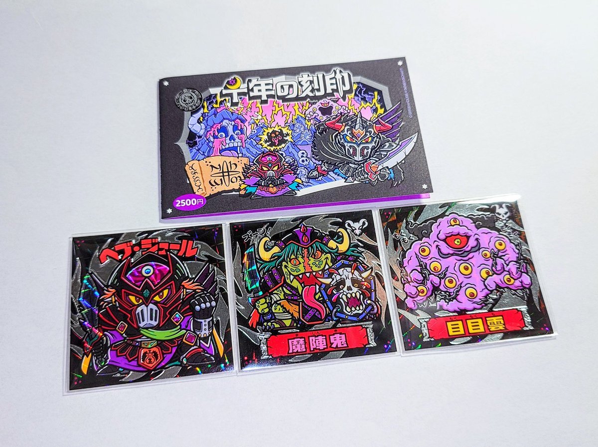 【千年の刻印】ドォルキー・モーの配下が届きました✨️今回も三者三様の魅力が詰まっていますね😁 @Gemein_schaft_ さんこれからも楽しみにしています〜😊 #ビックリマン #ひろひろのビックリマン #千年の刻印 #ゲマインシャフト pic.x.com/0AmLofR3Mm