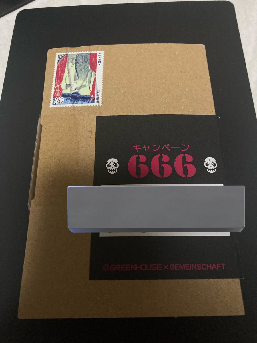 ゲイマンシャフト(@Gemein_schaft_)さんの666キャンペーン当選してた! シルエットかっこいい😊ありがとうございました❤️ #グリーンハウス #千年の刻印 pic.x.com/Vl80Cw1cjj