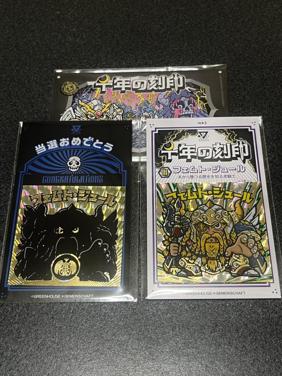 Gemeinschaft様 @Gemein_schaft_ プレキャン当選!ありがとうございます! 届いてビックリ! ワタクシ、老系キャラ大好キーなので堪らないフェムト・ジュール当選! ありがとうございます!ありがとうございます! 大切に致しますーーー! #ゲマインシャフト #千年の刻印 pic.x.com/1uy8D7eXv9