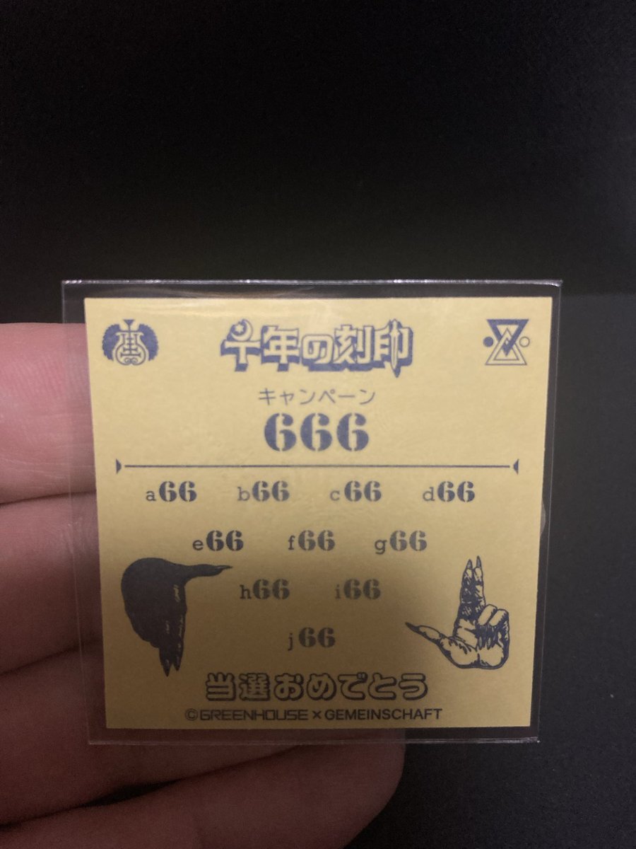 ここ半年くらいファッキンワークが残業ばかりでおもしくなかったけどめちゃ嬉しいことが 666キャンペーンまた当ててもらえたー!これのおかげで嫌な気分全てチャラ🌟 もうuv対策した額縁買っていれよう ありがとうございましたー! #グリーンハウス #千年の刻印 pic.x.com/gNNxQuVxAA