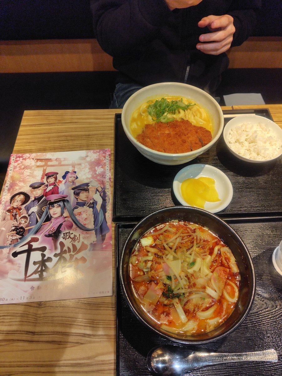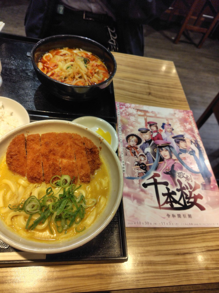 千本桜観劇後千吉でカレーうどん いやぁ~盛り上がった、楽しかった、皆さん歌も演技も素晴らしかった。特に軍医役の歌と演技、感動しました。悪役2人も演技力凄かったし御前賀悠那さん可愛い演技でした。他のキャストの皆さんも本当に歌も演技も上手で素敵な時間を有難う #千本桜~令和間引刻~ pic.x.com/7bkYq86LSw
