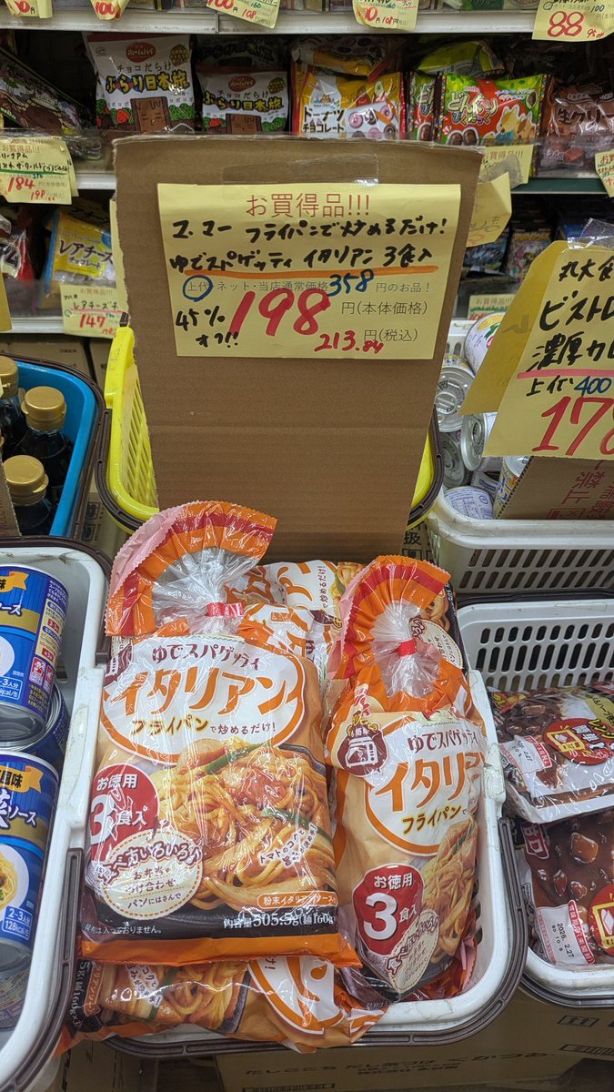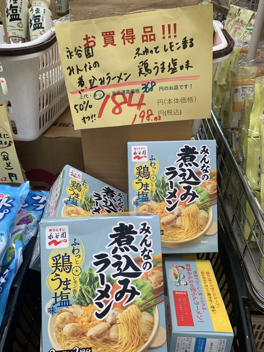 こんにちは WAKEA千林店です✨✨ お買い得商品のご紹介です👍️ 🉐鶏うま塩味 煮込みラーメン 参考価格368円の品が税込198円⚡️ 🉐ママーイタリアン 3人前 参考価格358円の品が税込213円⚡️ #千林 #千林商店街 #訳ありショップわけあ pic.x.com/npglN1G4Qd