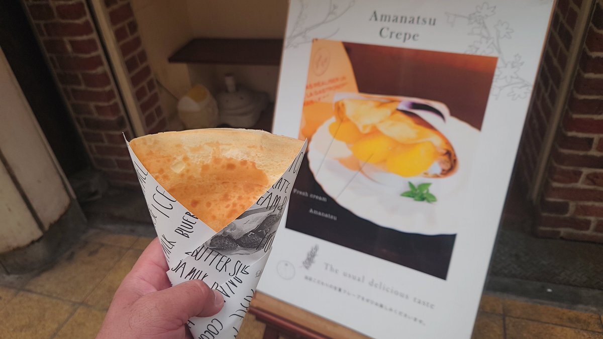 ④ロリアンクレープさん(さっきのコロッケやさんのすぐ近く)の甘夏クレープ(450円) 生クリームの甘さと甘夏の酸っぱさがマッチしていて、非常に美味しい! 商店街内を結構歩いたので、甘いものが体に染みます🤣🤣 #千林商店街 #はづきまるくらぶ pic.x.com/CscUqGm8up