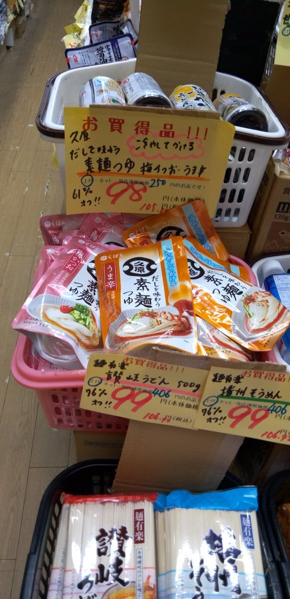 こんにちわ!ワケア千林店です🐱 💮まごころ食卓 🔵上代385円が 🉐186円 💮そうめんつゆ 🔵上代250円が 🉐105円 💮讃岐うどん播州そうめん 🔵上代406円が 🉐106円 💮ベビースターミニ 🔵32円でお得です。 ぜひ、ワケア千林店へ。 #千林 #千林商店街 #わけあり pic.x.com/cElLzSbKQb