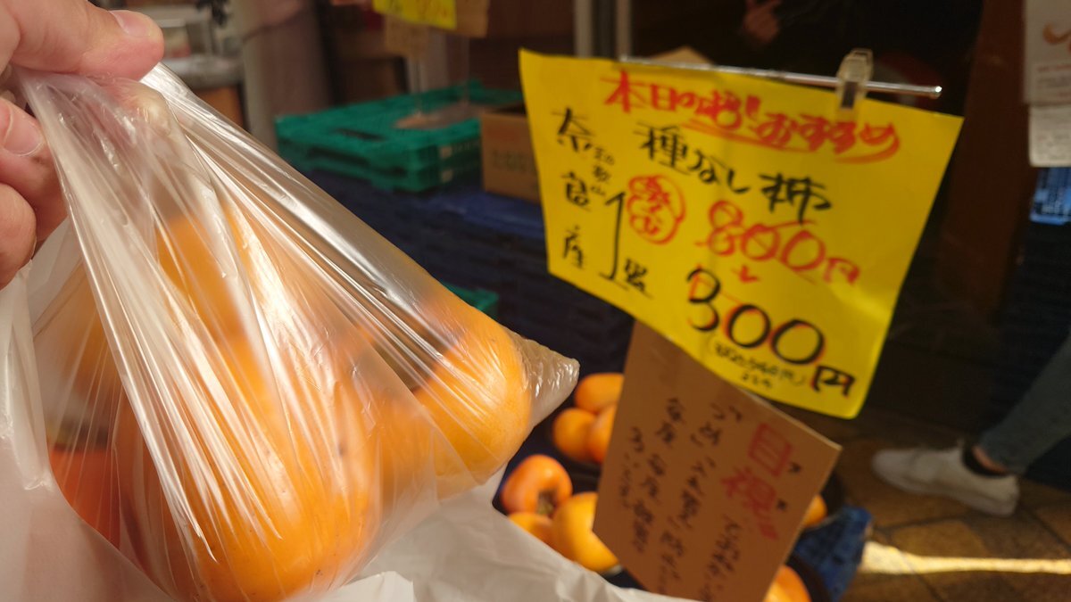 握りこぶしほどの大きさの柿4つで税抜300円!スーパーで買うよりも安い👏 帰ってじっくり味わうとしましょう😙 写真を撮っていると、店主が指ハートを作ってにこやかに声をかけてくれました😊 #千林商店街 #はづきまるくらぶ pic.x.com/Wtbshh1JsL